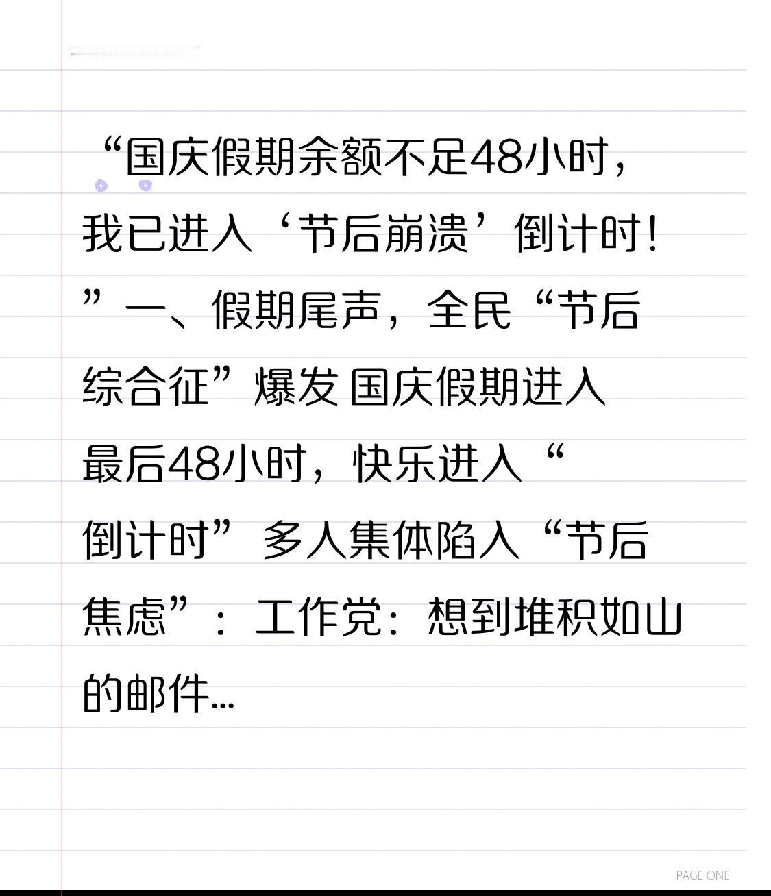 “国庆假期余额不足48小时,我已进入‘节后崩溃’倒计时!” 一、假期尾声,全民“