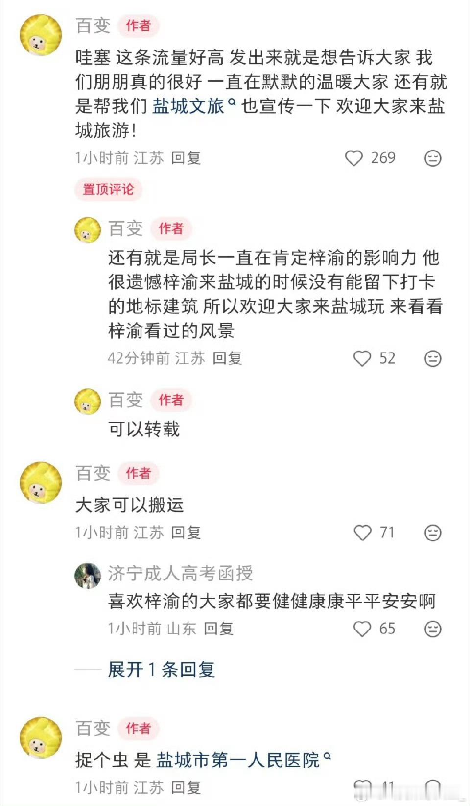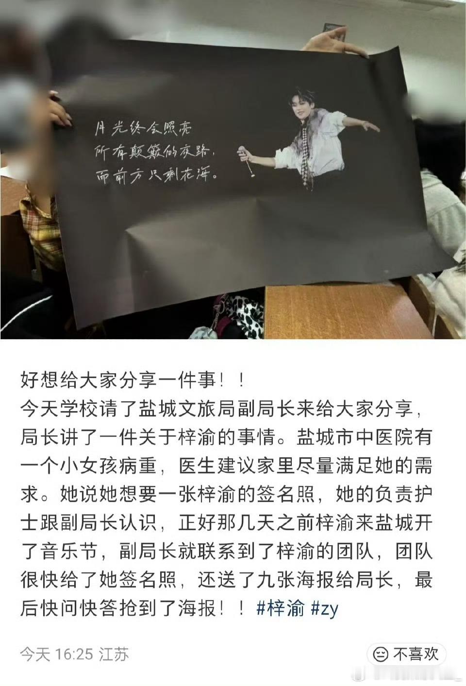 梓渝你[捂嘴哭][捂嘴哭]刚看到梓渝鼓励生病女孩还送了自己签名照,文旅局局长说这就是明星效应,梓渝让女孩注意身体,好好养病[捂嘴哭][捂嘴哭]太好了吧