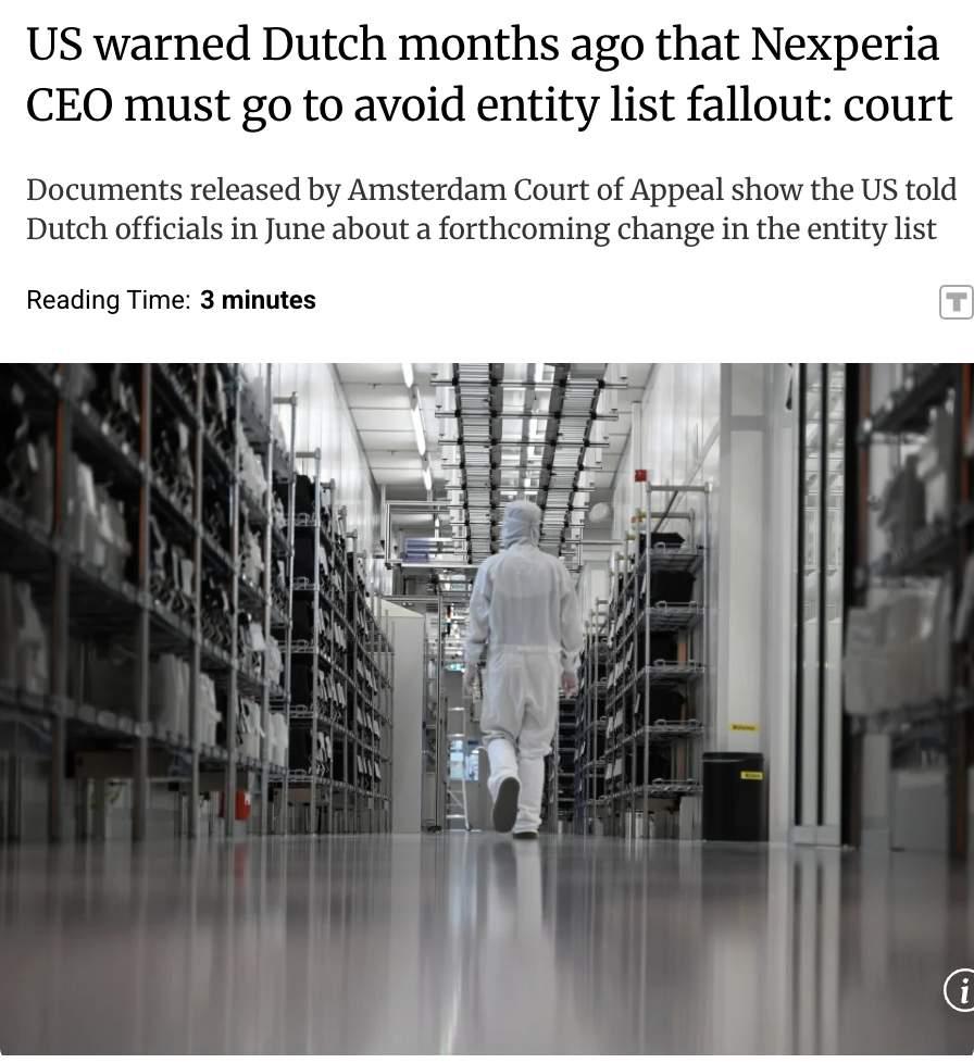 中国反击荷兰一出手就是杀招。荷兰有点好玩,感觉他们制定政策这帮人是学过中文的,但是没有学好。 他们说是基于安世半导体“可能会对荷兰和欧洲经济安全构成威胁”,按理说,他们发现了这个问题就应该想办法去防范,但是现在他们可好,使出了一招毁天灭地自杀回旋镖。 中文语境教育我们勇敢是没有困难要上,有了困难排除困难也要上。 他们学成了没有困难制造困难也要上。 现在好了,挨一大比兜,心子把把都舒服了。 顺便说一句,可能是他们没有意识到真正的威胁是和美国走得太近,美国是有事先割盟友,而他们不长记性。 点右上角关注我,我们一起去看这个魔幻的世界