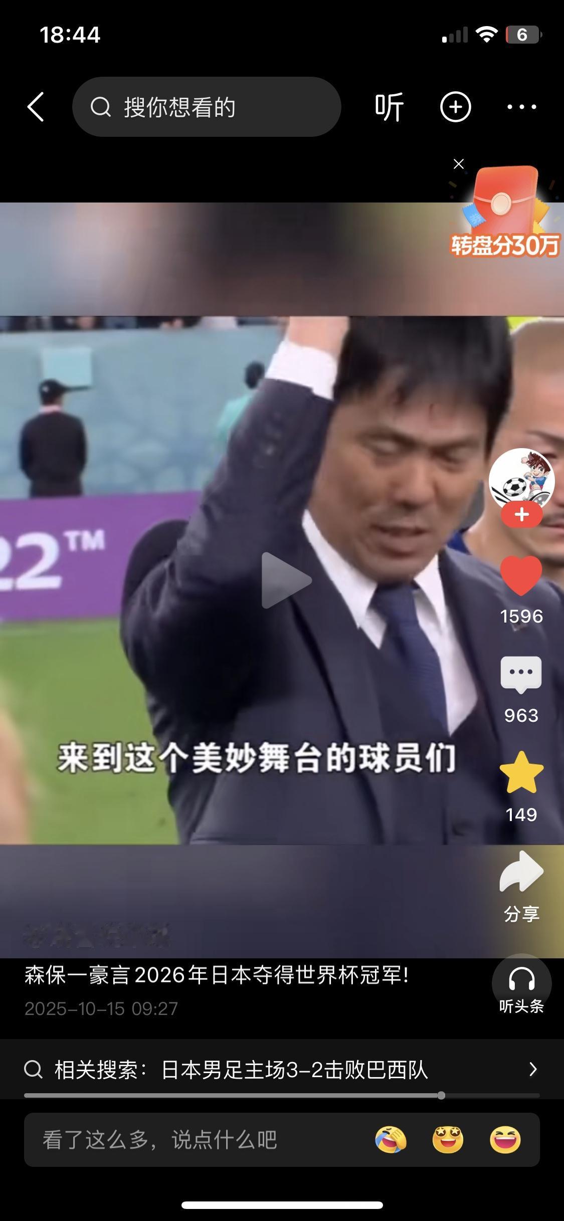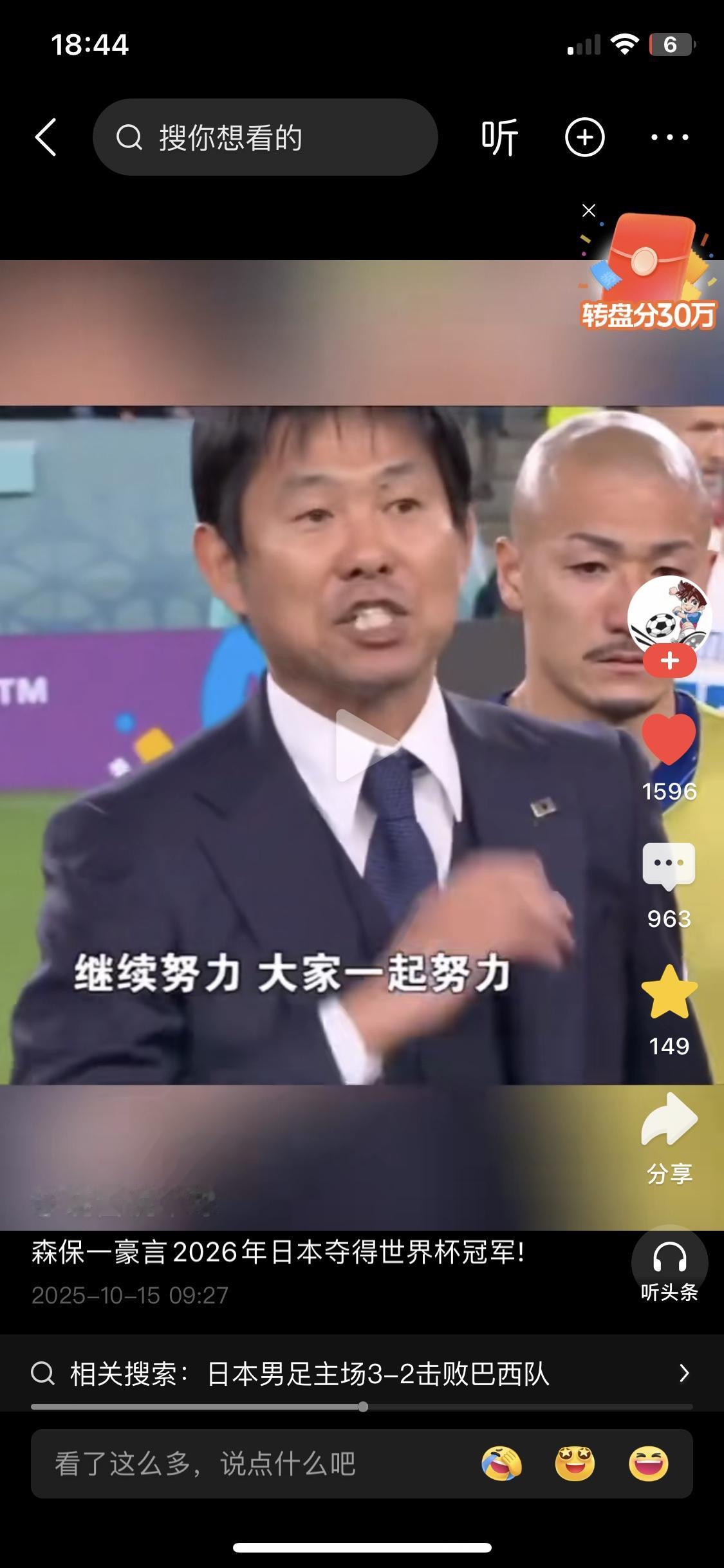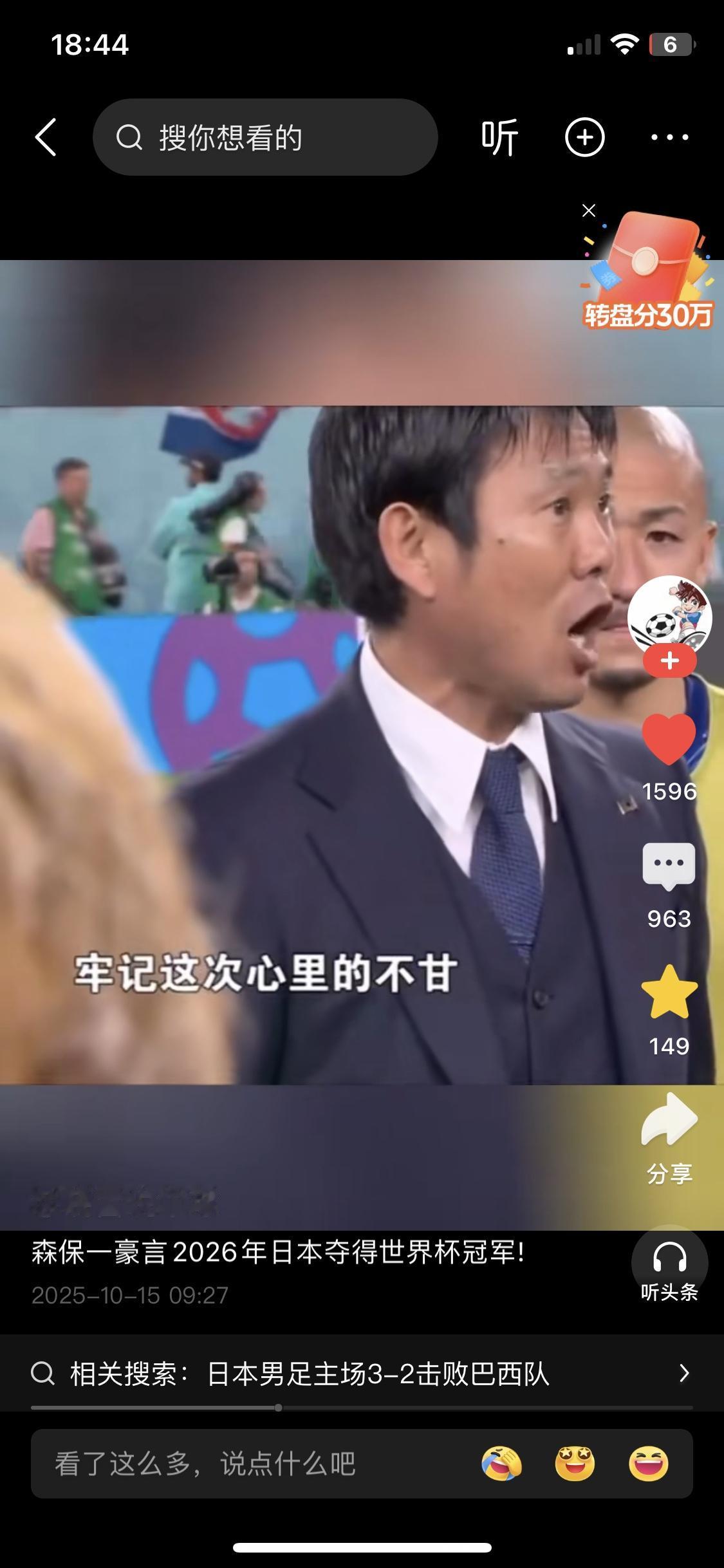 日本历史性3:2击败全主力的巴西队!看看日本主教练发自内心的热爱和激情,人家这才是像人性光芒的足球运动。再看看李铁那撕,又丑又没教养,站在国家队平台上只会利用底层流氓的喜号挑动低级民族情绪,李铁说什么中国教练怎么了,中国球员最强…..最劣质人群去搞足球运动,结果就是和日本足球差距万里了。