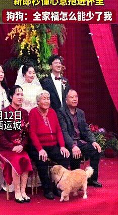 山西运城新郎手机屏保火了——全家福正中间,黄白土狗爪子搭着他胳膊,眼睛亮晶晶盯着