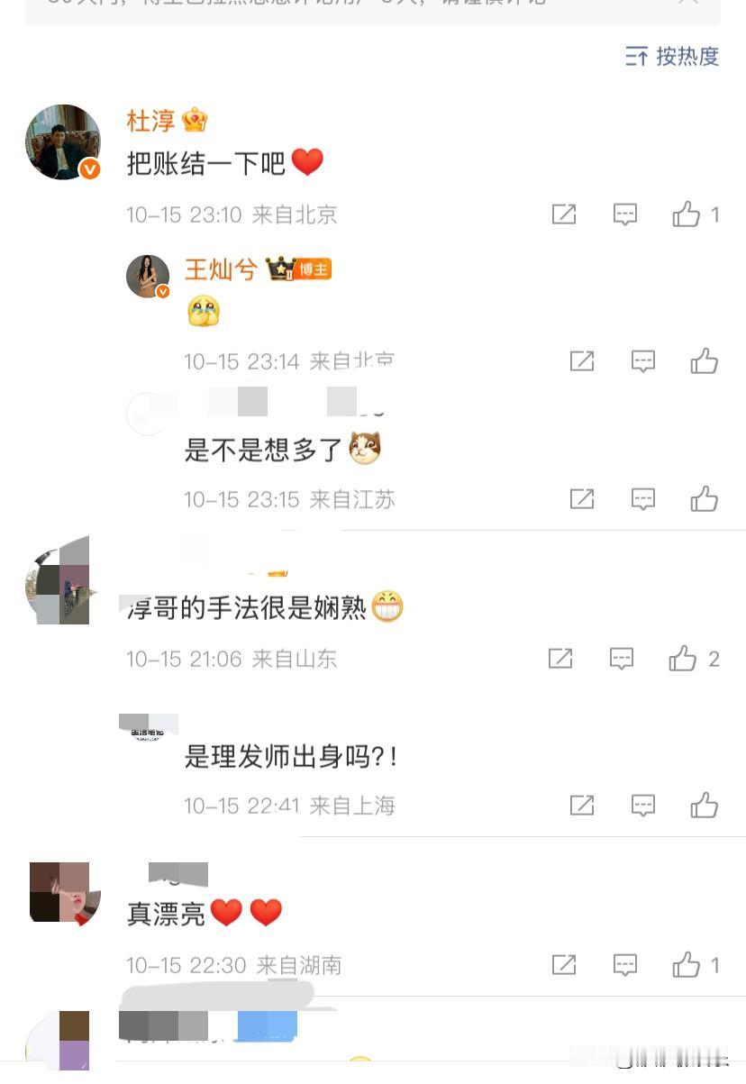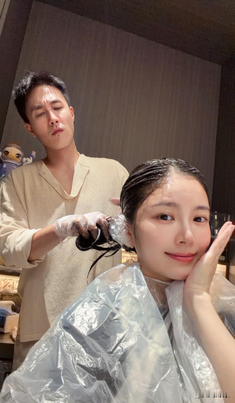 杜淳老婆王灿兮高调发文:我就是想秀恩爱。 10月15日,王灿兮在社交平台发布动态: “杜托尼染的头发,技术不错,果然黑长直才是yyds。” 他还配了六张图片,是她老公杜淳给她染发时和染发后的状态。 王灿兮想把头发染成黑色,但又不想去理发店,就让老公杜淳在家给自己染。 杜淳戴着手套,一脸严肃,染的有模有样,她的老婆一边享受着杜淳的服务,一边自拍架偷拍,这秀恩爱的画面,糖分都超标了。 王灿兮把颜色染成了黑色,染完还不错,看来杜淳的手艺还是很好的嘛。 王灿兮发布了这条动态以后,杜淳还在下面评论: “把账结一下吧。” 果然秀恩爱被你们俩玩明白了。 我记得之前有人说,杜淳很花心,以前玩的很开心,所以一直迟迟不结婚。 他和王灿兮能在一起都是女方追的他,后来觉得对方还不错,就结婚了,本以为杜淳结婚后还是追一副吊儿郎当的模样,没想到他既成了好老公,又成了好爸爸。 王灿兮 王灿女儿 杜淳老婆
