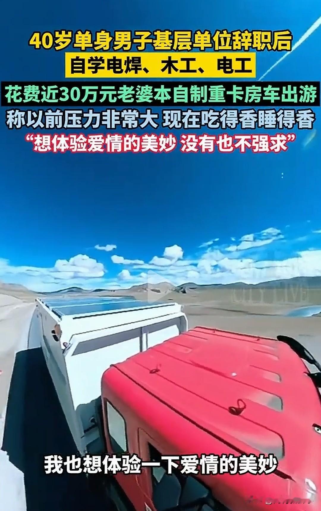男子花30万自制重卡房车出游 2025年10月,广东梅州40岁的温建军火了!他驾驶着自制的重卡房车穿越羌塘无人区的视频在网上疯传。这辆长9米、宽2.5米的“移动城堡”,是他一年半心血的结晶,花了近30万。 2022年他发现市场上重卡房车贵,普通房车又有缺陷,就决定自己造。学工商管理的他从零开始,白天学焊接,晚上研究电路图。他还专门增驾了B2和D车型。 房车内有厨房、卫浴间、休息区和办公区,水电配置也很齐全。他用近20万买底盘,相比百万级成品房车,节省了70%以上成本。这不仅是一辆房车,更是他追求自由生活的象征!