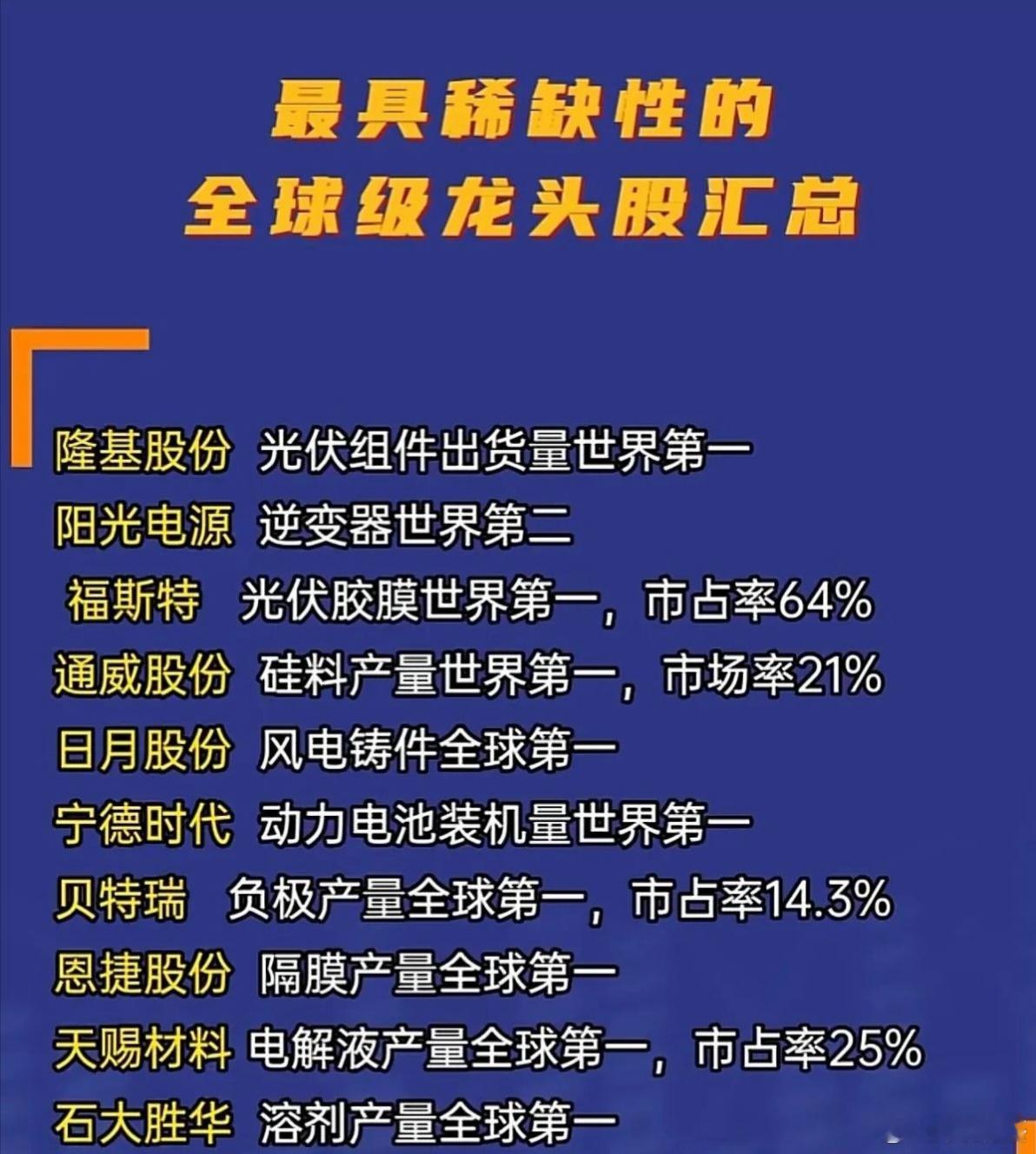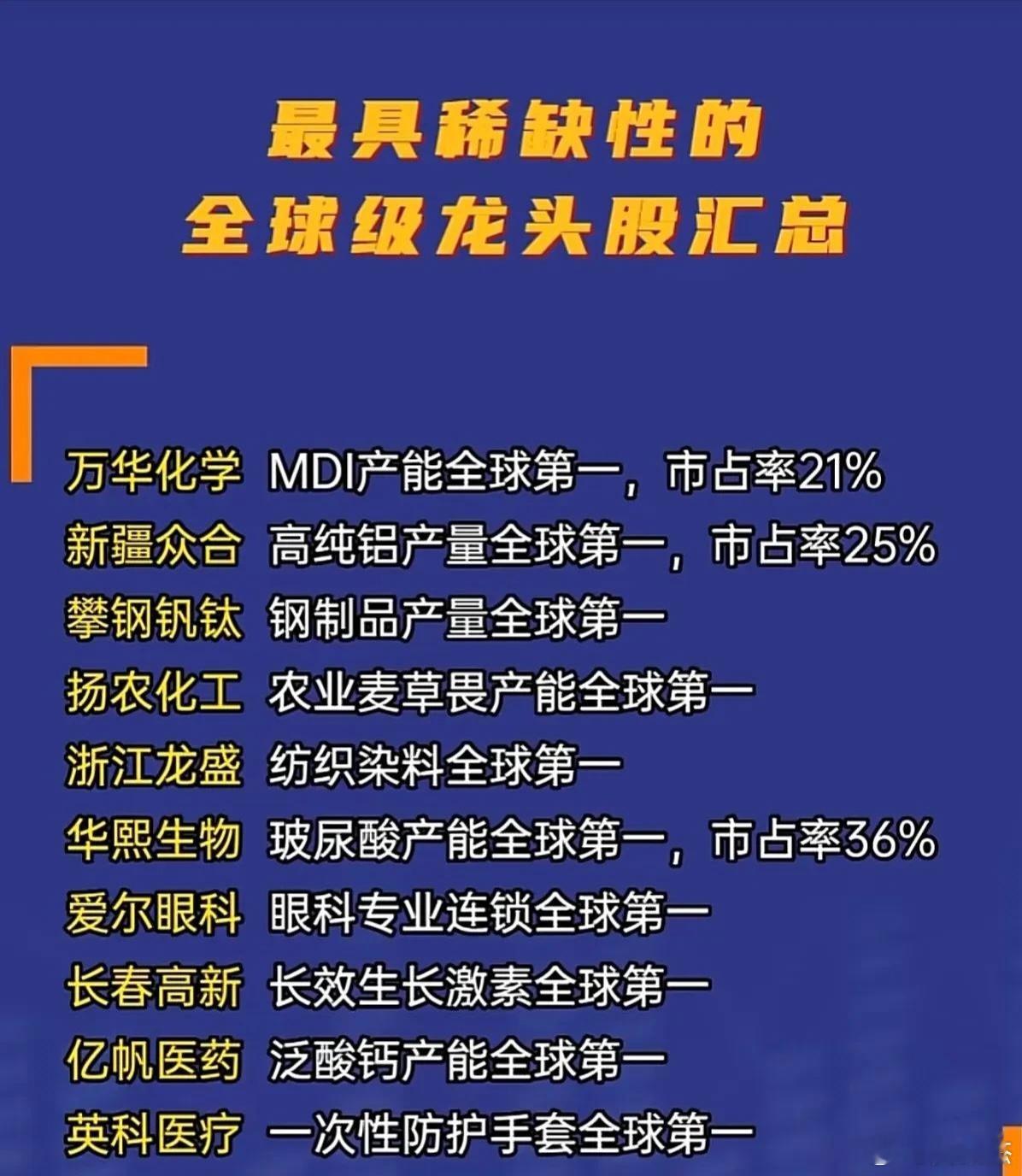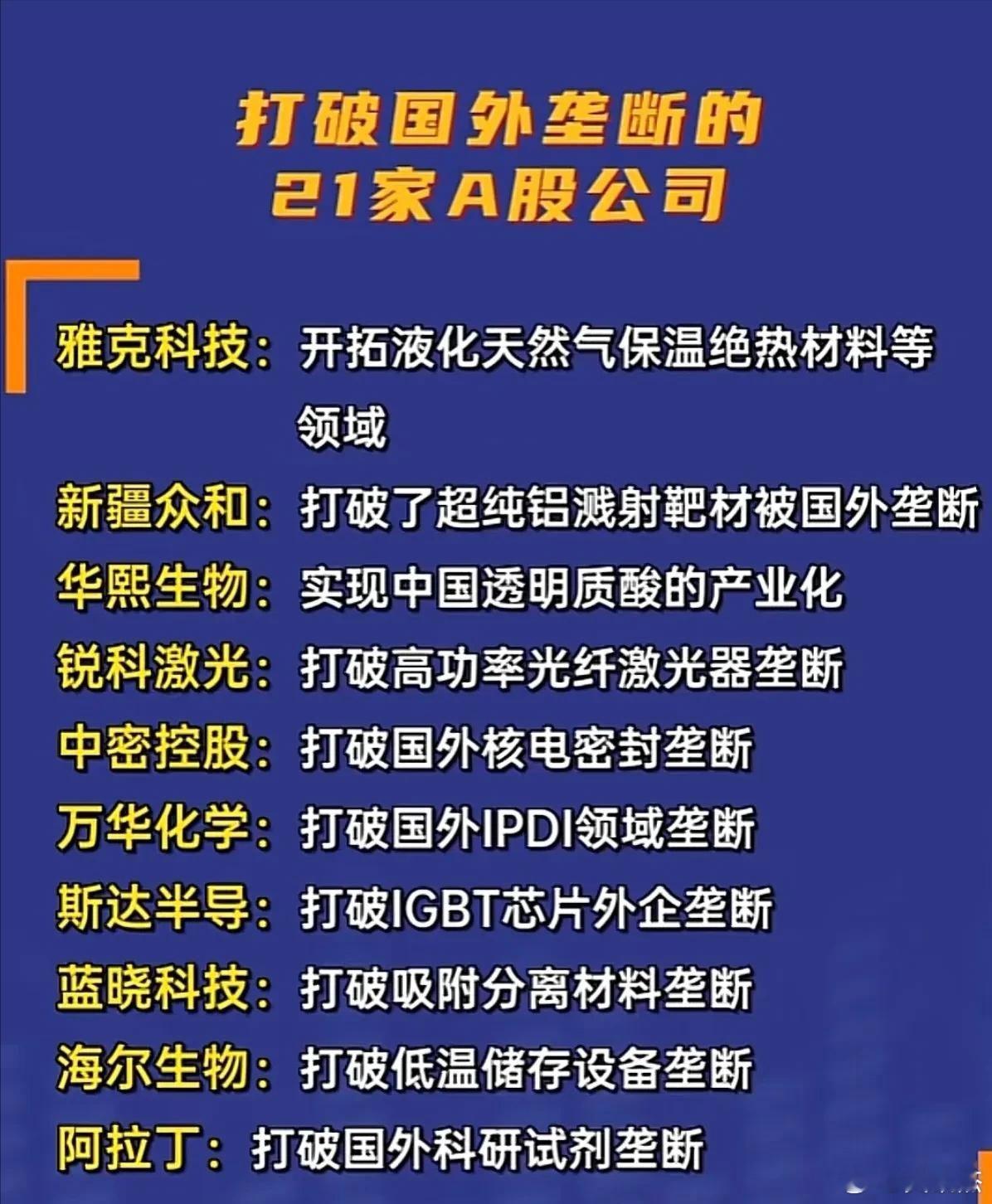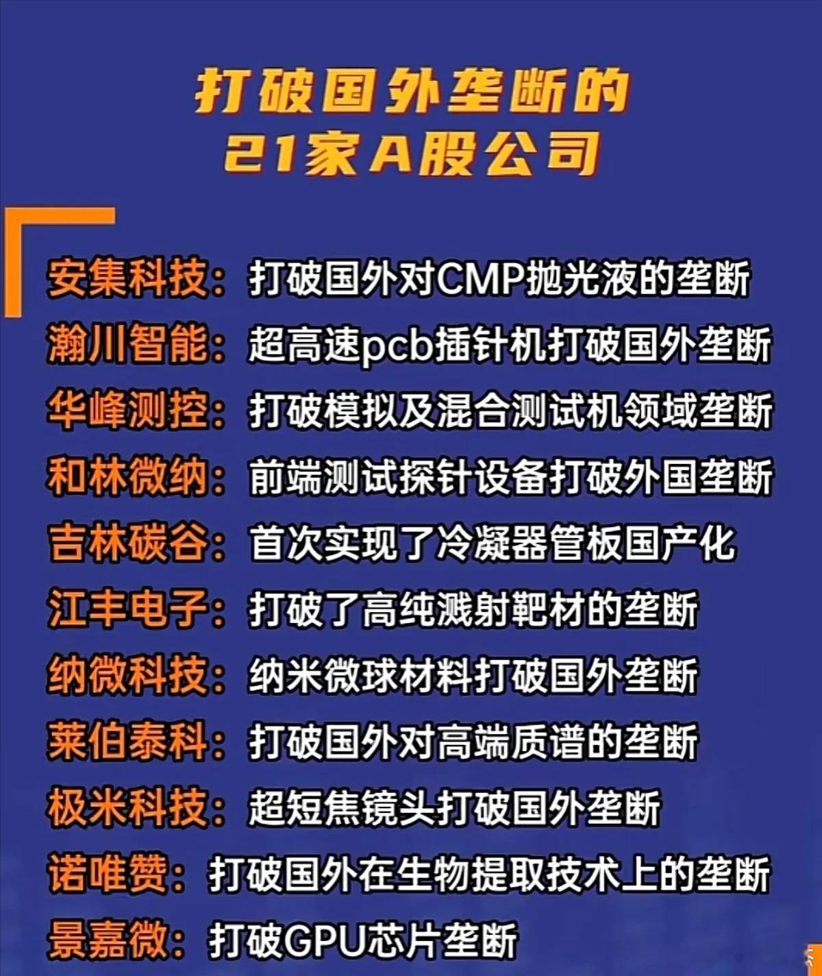 全球打破垄断以及稀缺性龙头股一览表,仅供参考。a股​​​