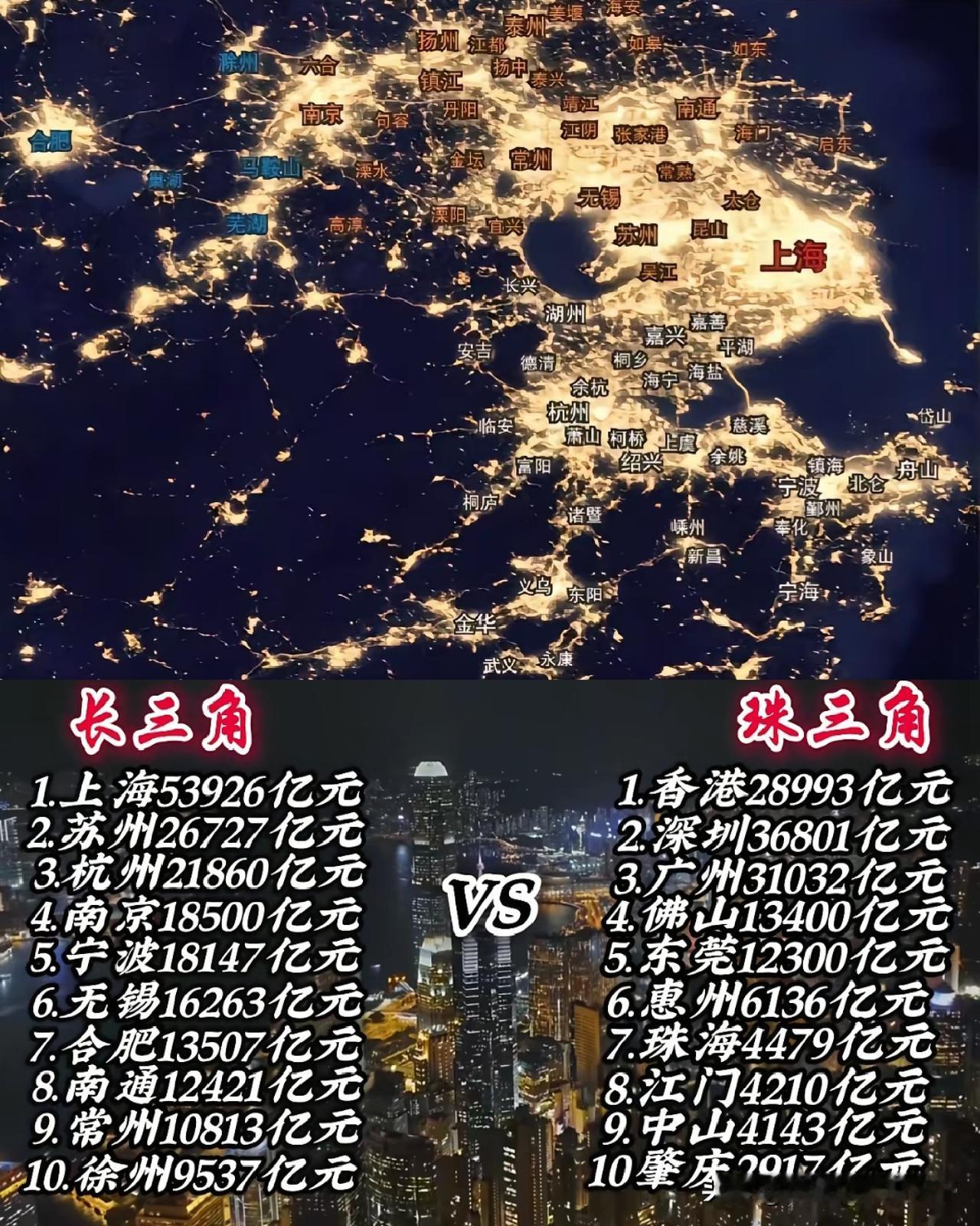 你说珠三角和长三角哪个更发达?哪个更有钱?从人口和GDP看长三角吊打珠三角啊。