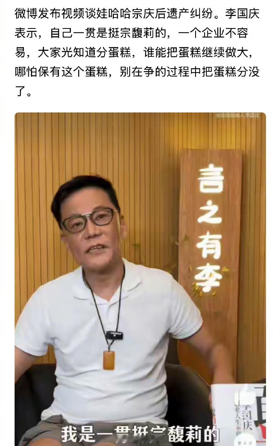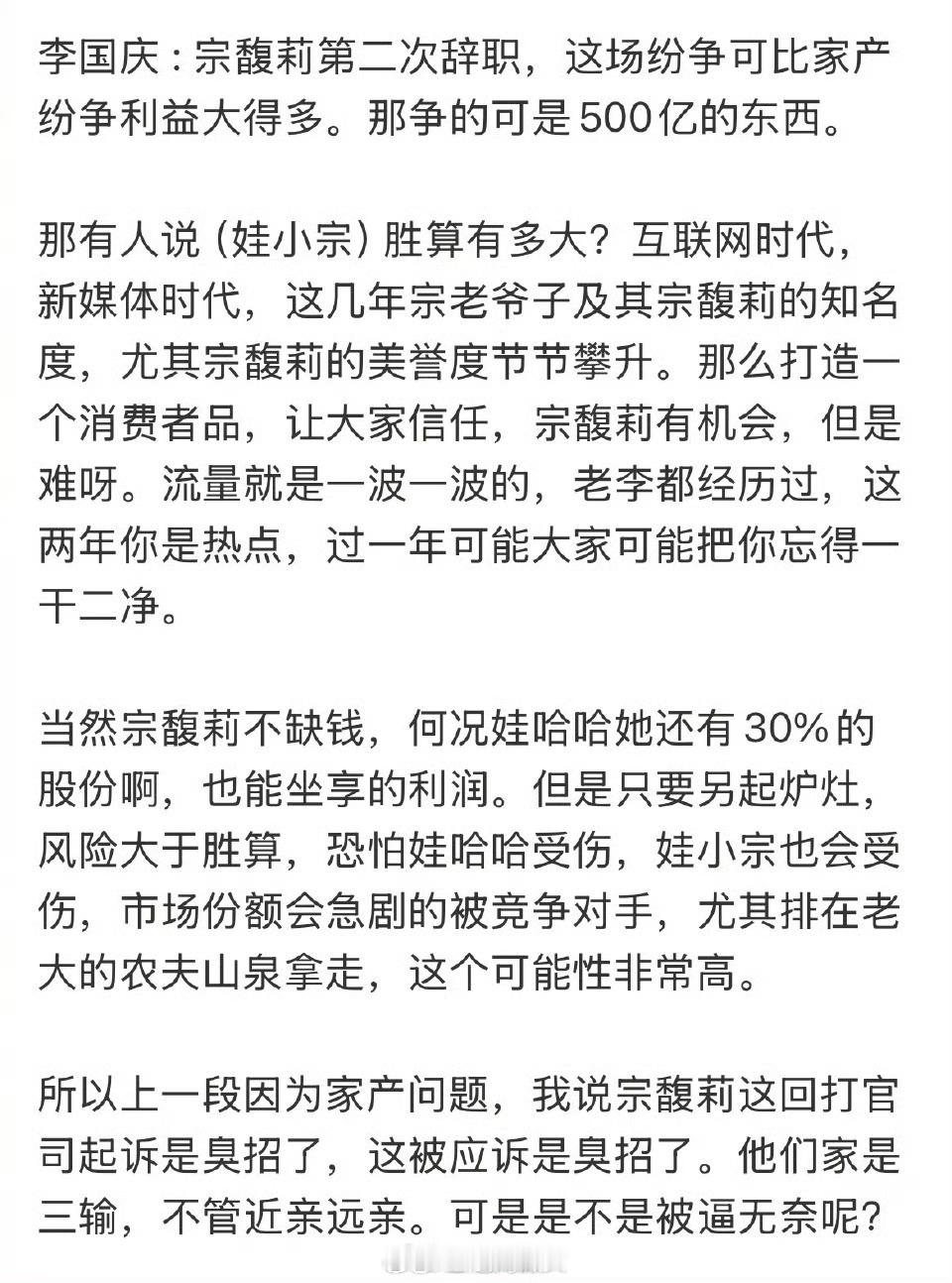 李国庆称宗馥莉单干风险大于胜算 李国庆预言:恐怕娃哈哈、娃小宗都会受伤,流量就是一波一波的,过一年可能被忘得一干二净[并不简单]