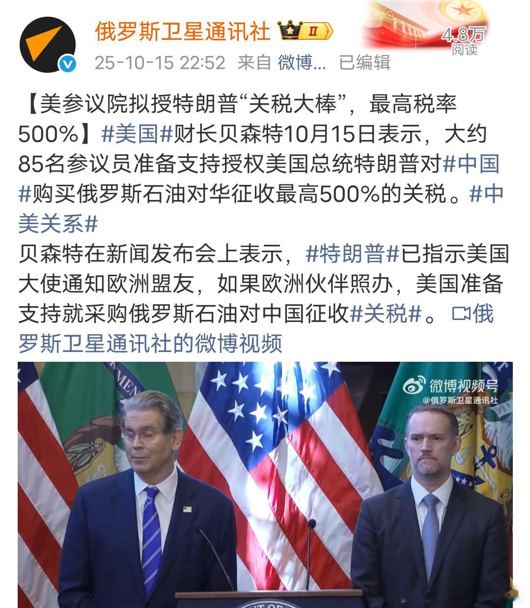 中国购买俄罗斯石油,可能面临被征收最高500%关税,并且美国准备连同欧洲盟友一起实施
