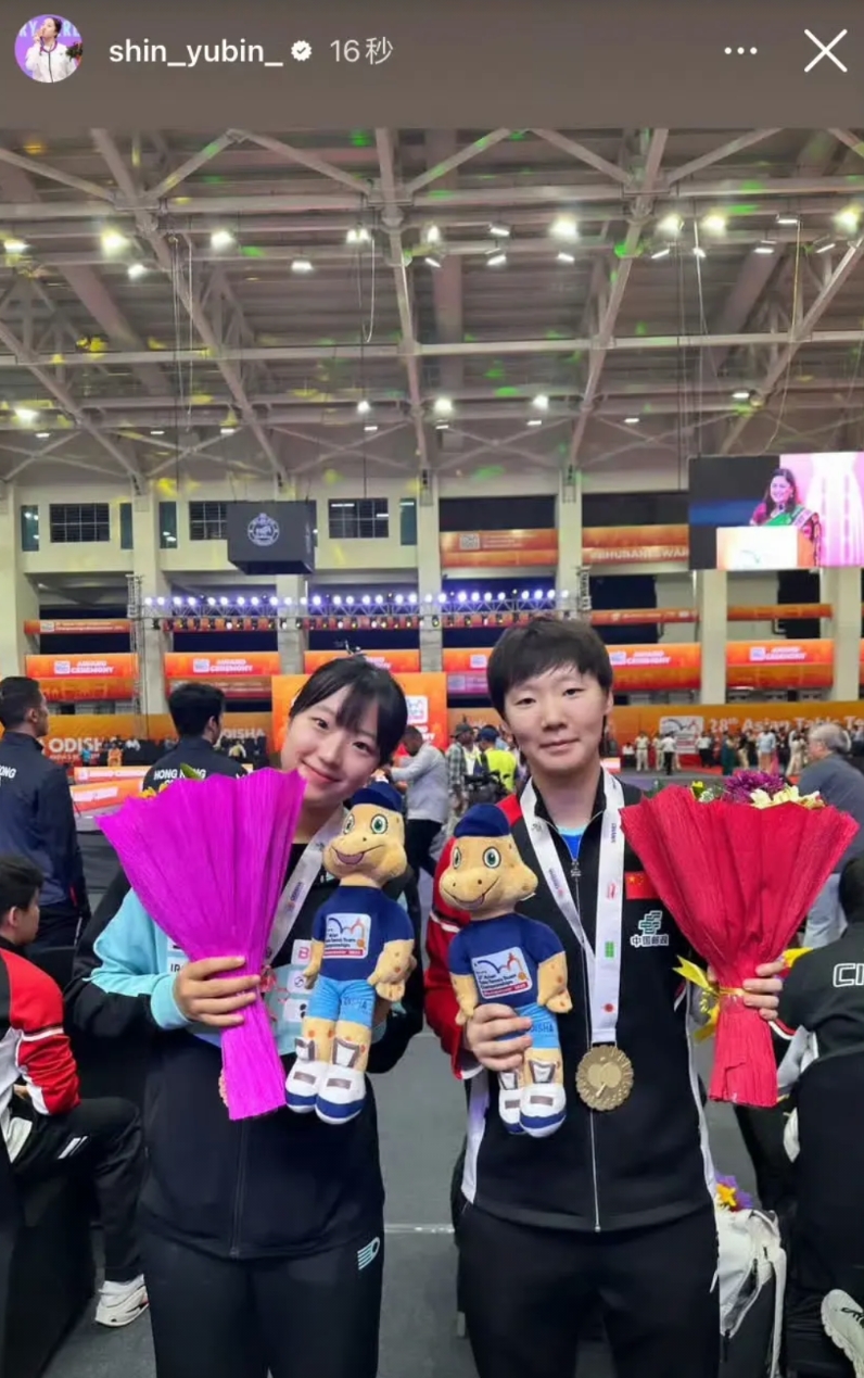 印度乒乓球团体亚锦赛结束,国乒男女团顺利捧得冠军奖杯! 韩国乒乓球选手金娜英和申裕斌在颁奖仪式结束后纷纷于社交媒体晒出颁奖仪式现场与王曼昱合影! 韩国两个小妹妹真是可爱呀!看起来都水灵灵的,脸上胶原蛋白充足! 曼昱本就与申裕斌是关系比较亲近的朋友,而金娜英从小就把王曼昱当做偶像!细心的球迷可以发现,其实金娜英打球的技术风格和王曼昱非常相近。几乎等于mini版小曼昱。 有珠玉前辈在前,其实金娜英想要进步只要参考王曼昱的技术细节就可以了! 只是能够做到王曼昱的程度还需要大量时间下的大量钻研和练习!毕竟王曼昱天赋异禀!