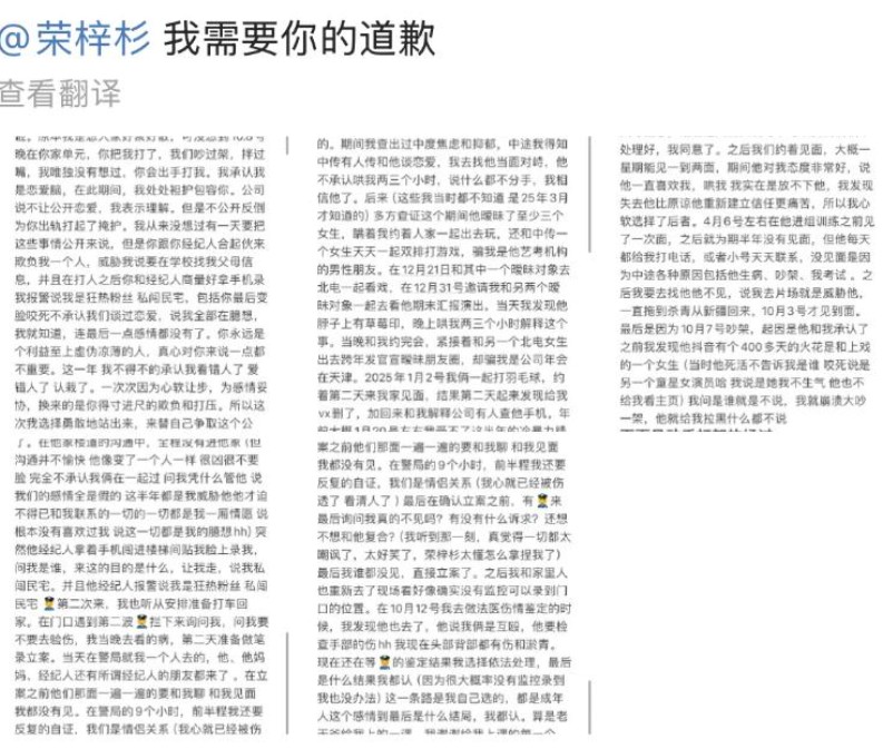 荣梓杉女友爆他出轨打人,真的有这么蠢吗?做这种事?   听了描述,没觉得是恋爱,