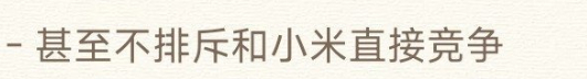 这个长文里面提到“甚至不排斥和小米直接竞争”,干翻友商!干的就是小米[捂嘴哭]
