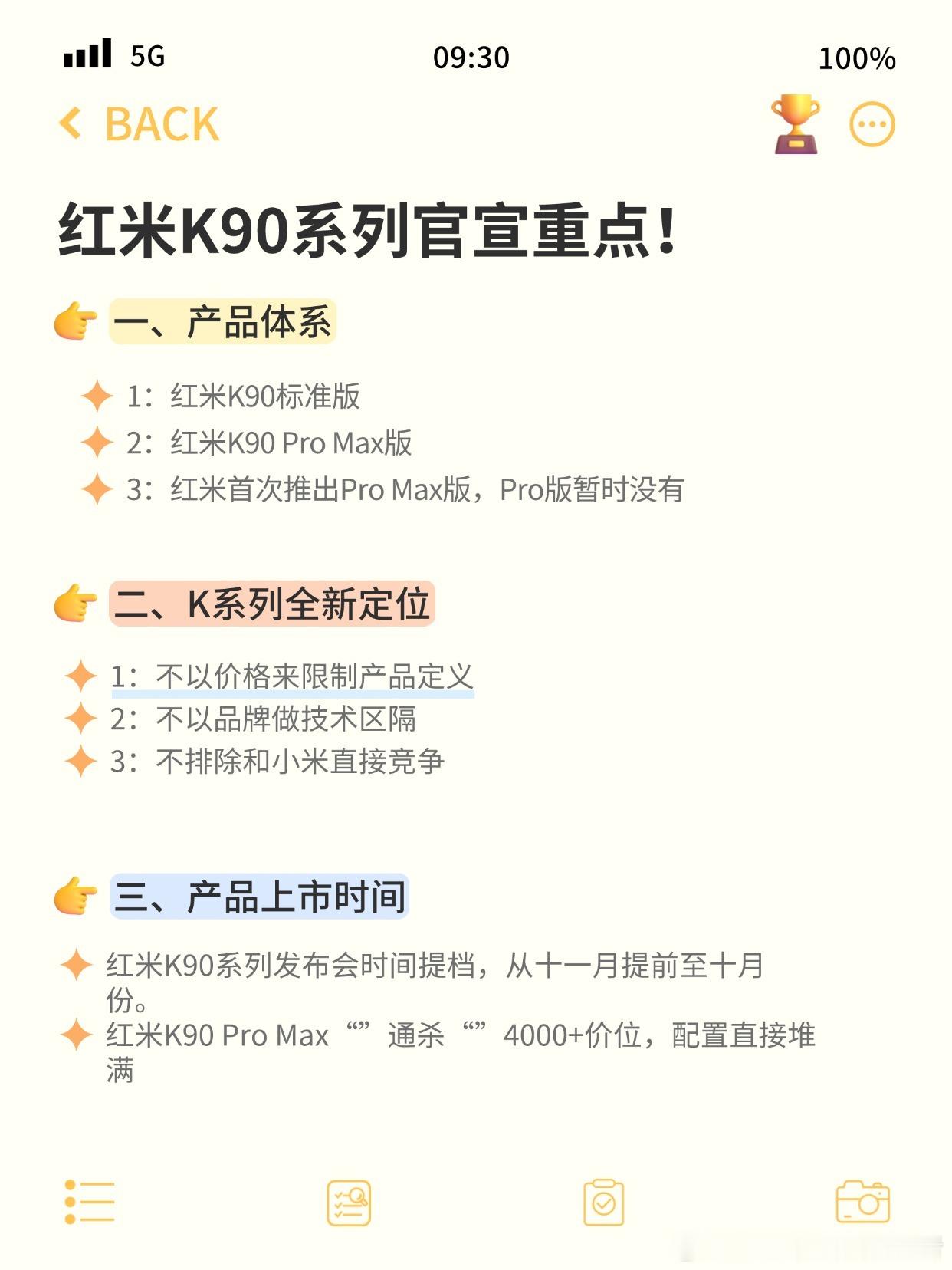红米K90系列确认十月上市,这次共有两款产品,分别是红米K90和红米K90 Pro Max,暂时没有Pro版本。按照之前的标准,红米K90应该还是主打2500元左右价位,而红米K90 Pro Max要去竞争4000+价位段。
