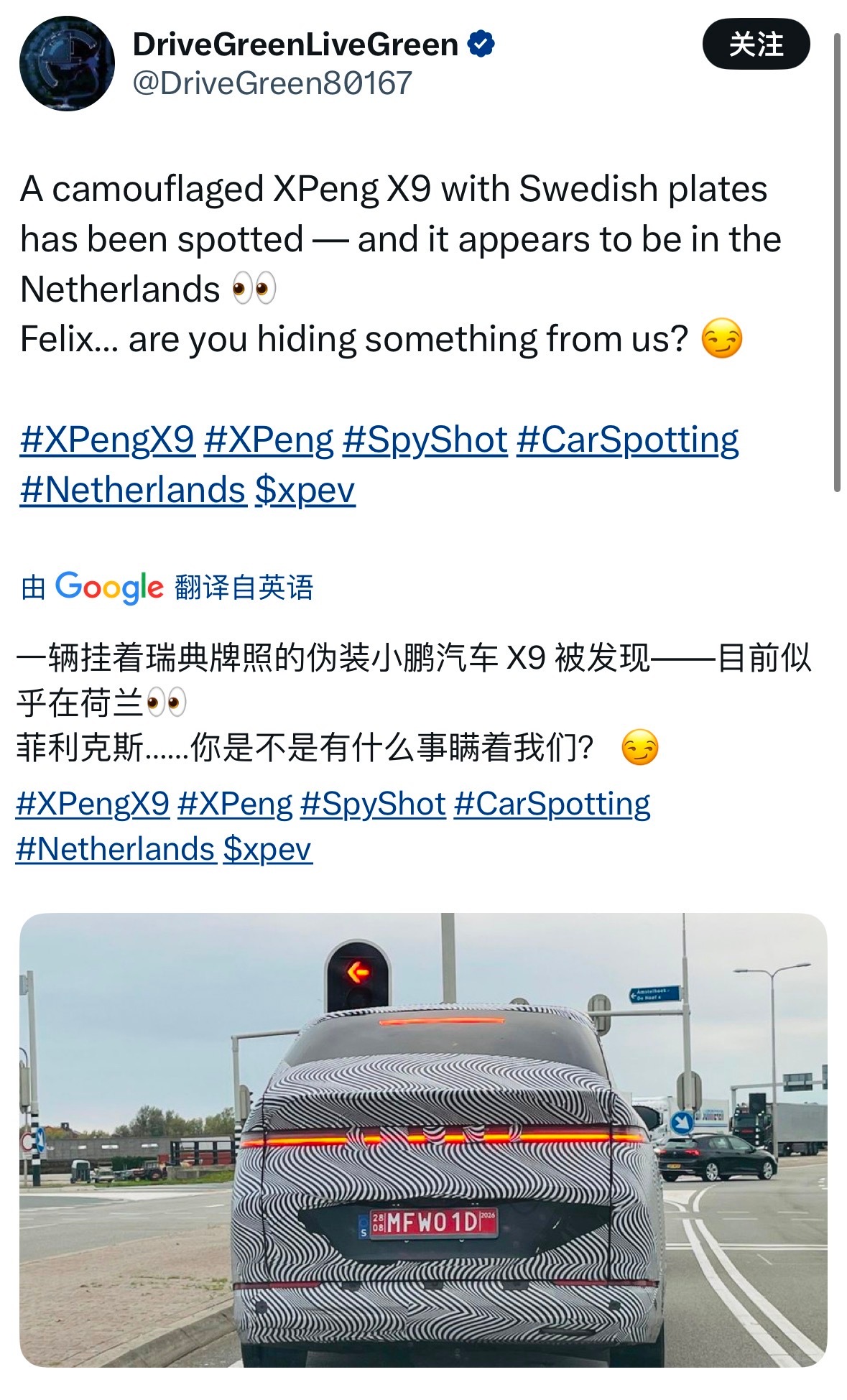 小鹏X9增程版海外测试引关注 近日,小鹏X9增程版在海外的路试谍照流出,欧洲多地网友纷纷表示:这车我见过,有点意思[并不简单]看来欧洲用户对小鹏X9表现出了浓厚的兴趣,或许增程版才是欧洲市场的答案?新车情报局 ​​​