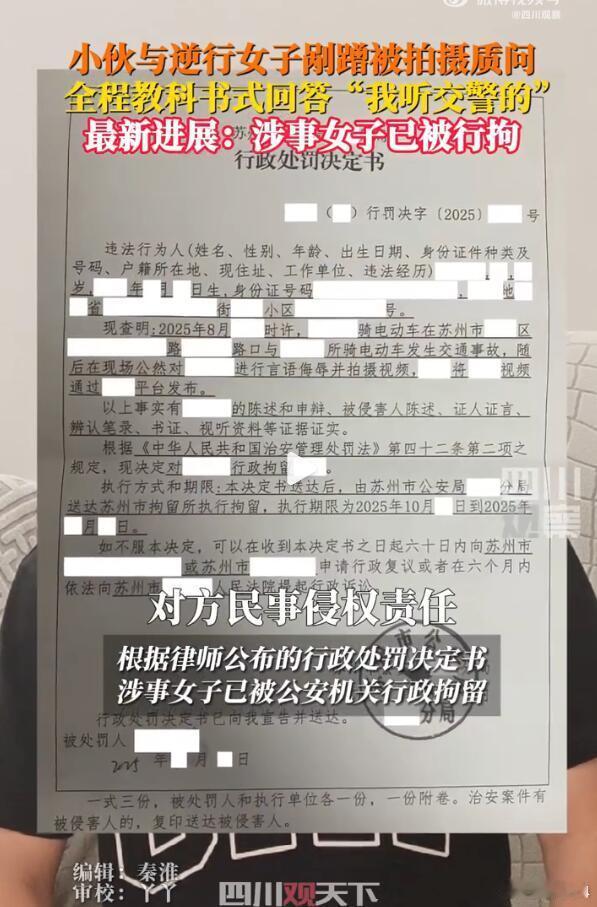 我听交警的事件涉事女子被行拘我听交警的事件有后续了