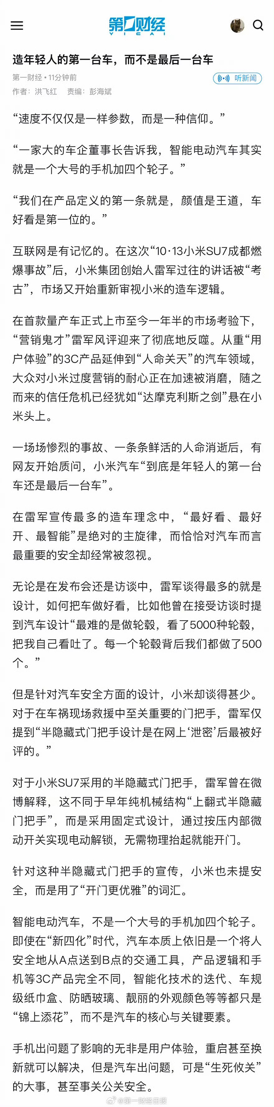 造年轻人的第一台车而不是最后一台第一财经发文,造年轻人的第一台车,而不是最后一台!