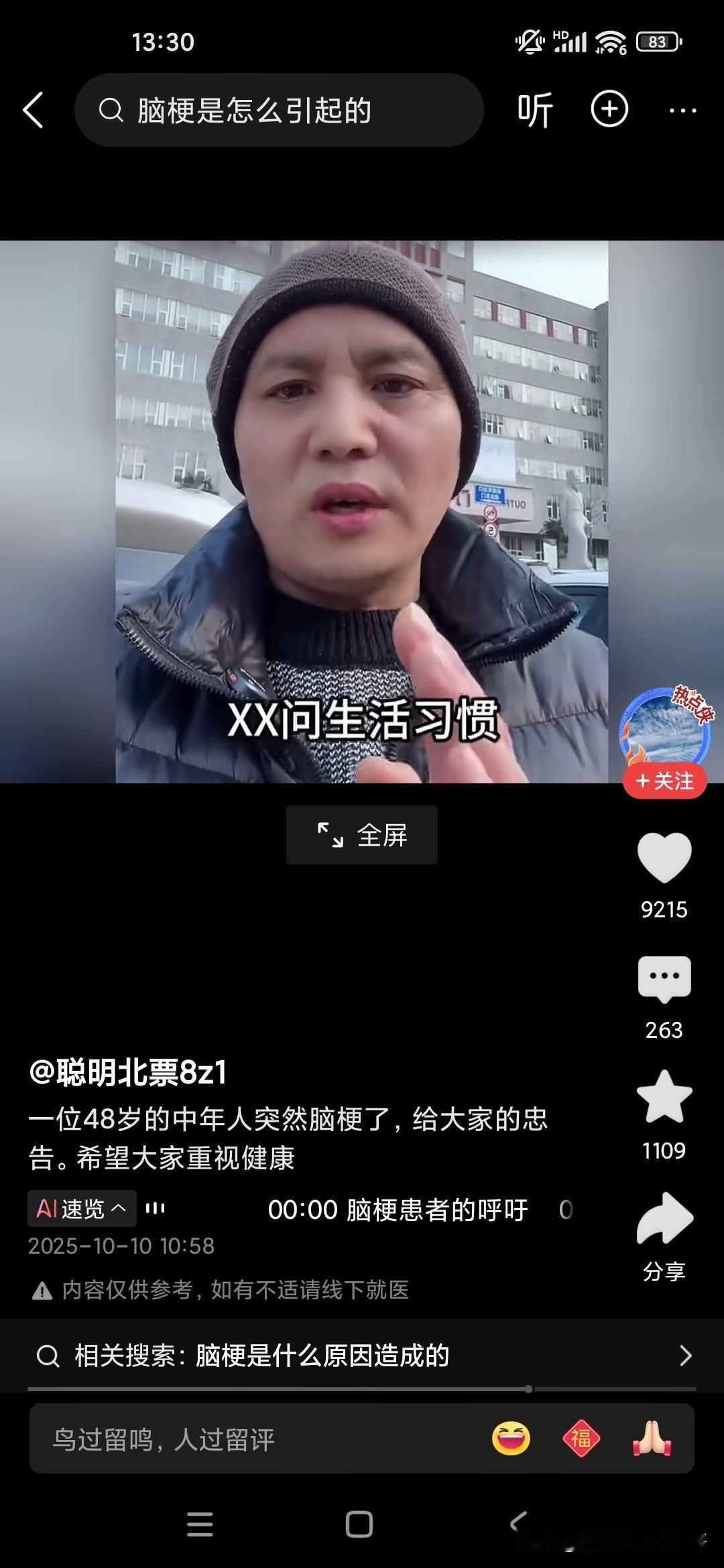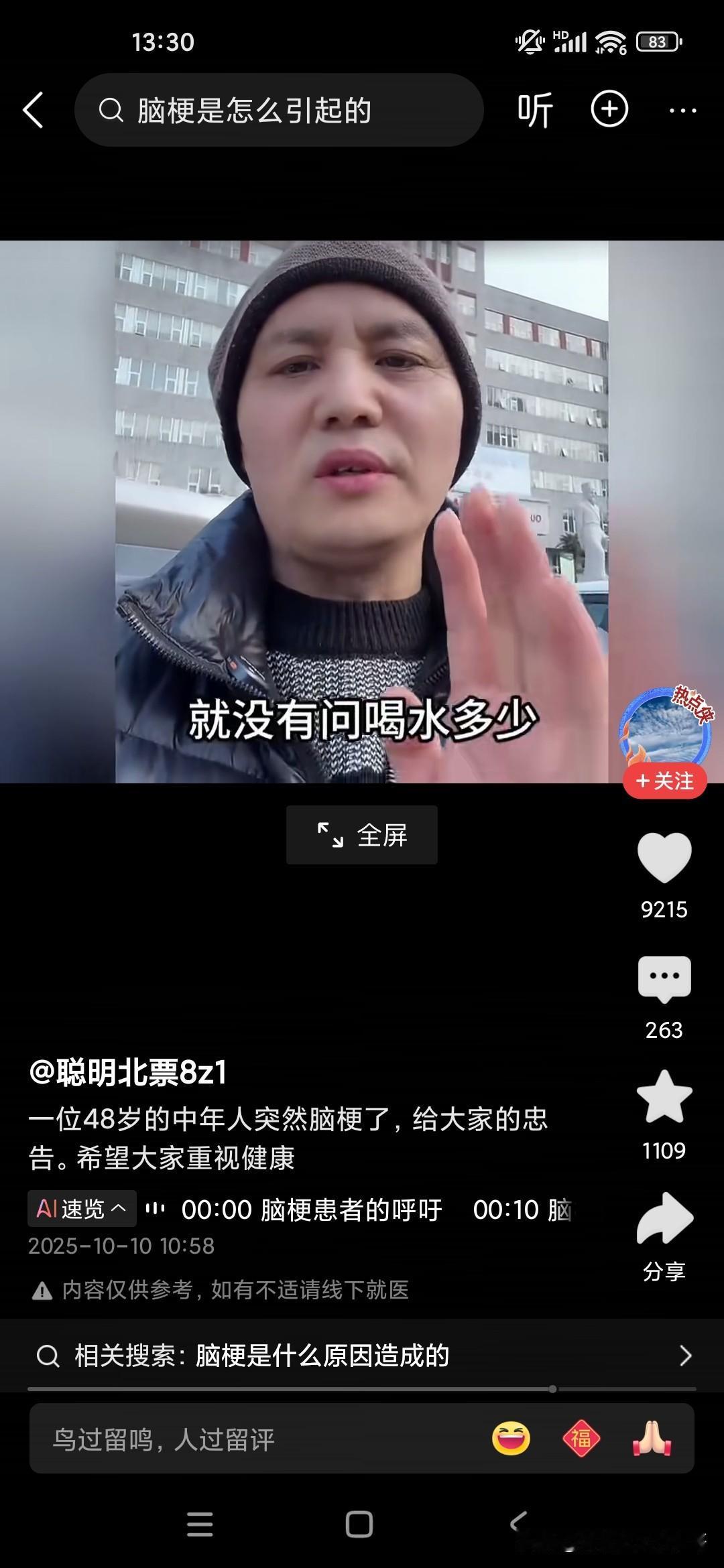 大家一定要对脑梗充满敬畏,千万不要觉得脑梗离自己很远,尤其是独身人士,自己一个人