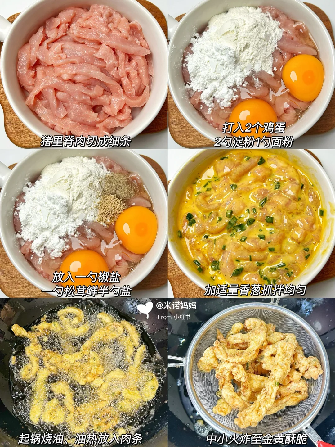 里脊肉 | 🥚蛋2个 | 淀粉2勺 | 面粉1勺 | 香葱适量