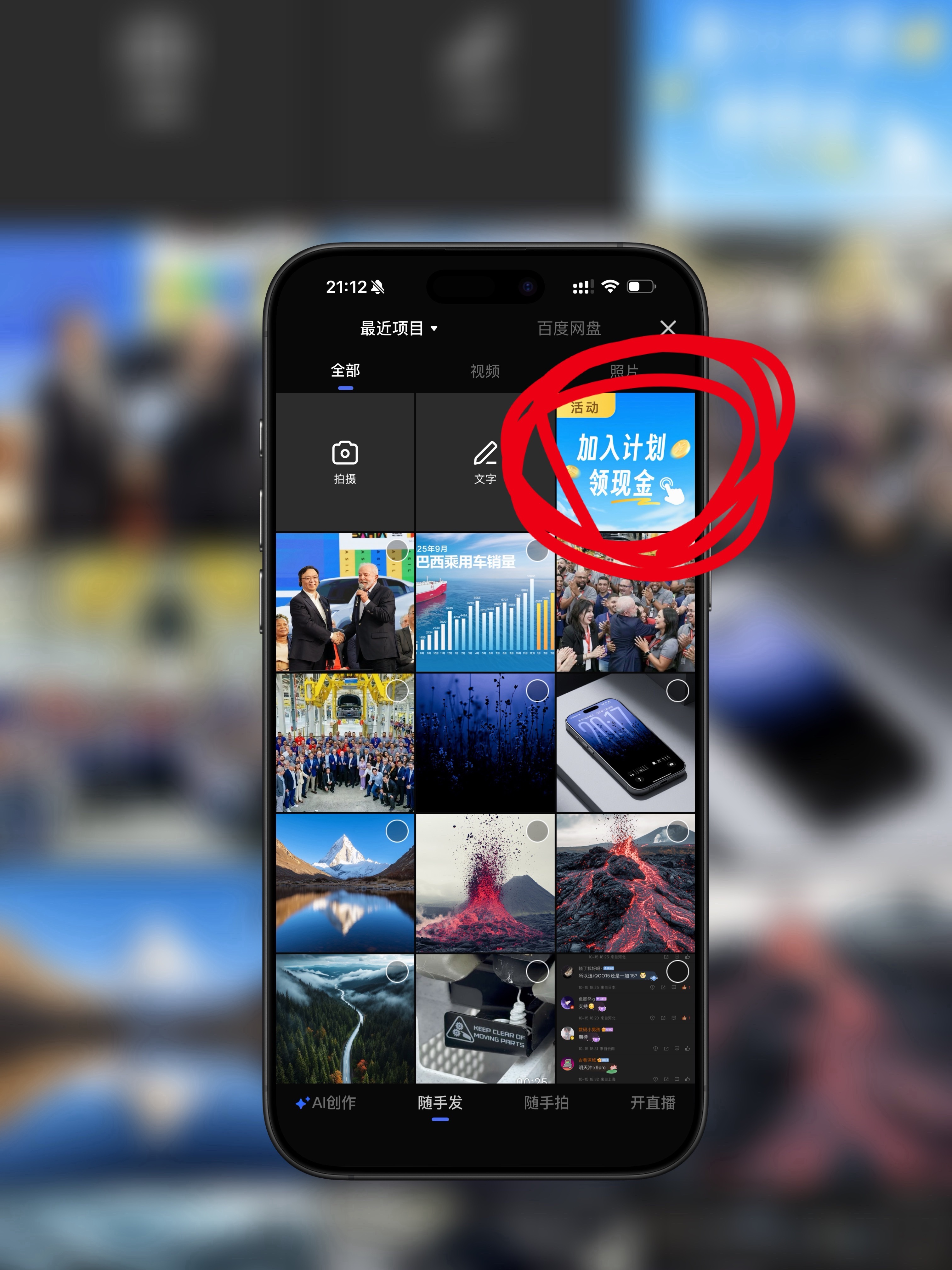 我刚用百度App打开相册,它居然在照片候选界面右上角集成了广告,那个「加入计划领现金」就是百度添加的广告。这种位置放广告也就百度做的出来。