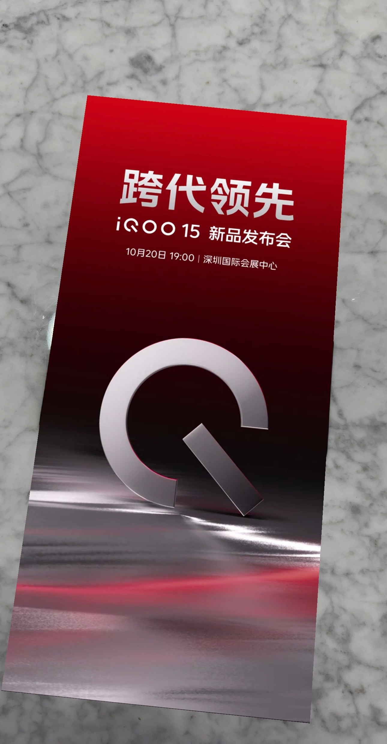 iQOO 15邀请函,实体卡片扫码后触发 AR呈现“跨代领先”主题动画,10月20日深圳见,未来性能旗舰!