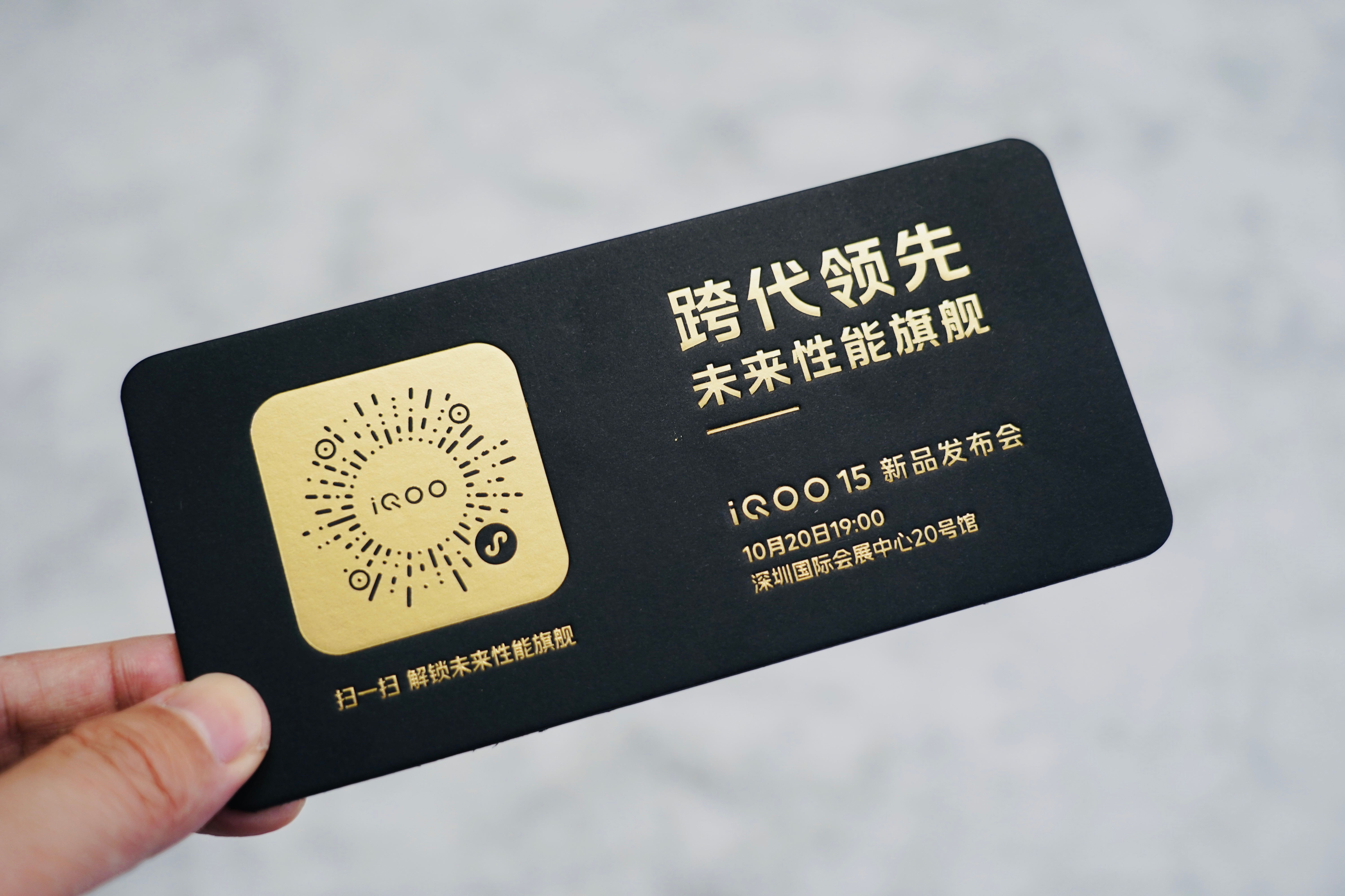 iQOO15邀请函,实体卡片扫码后触发AR呈现“跨代领先”主题动画,10月2