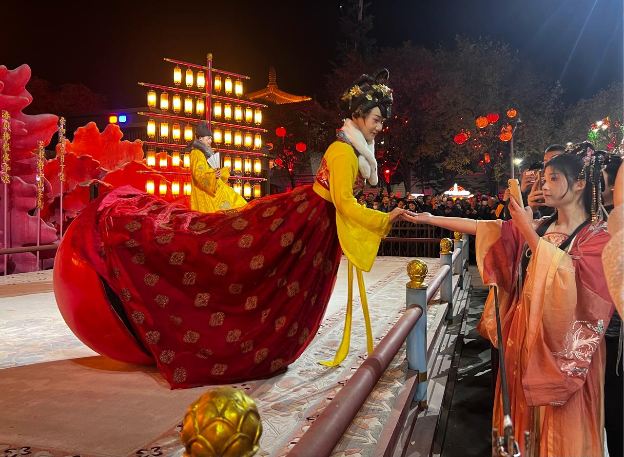 暮色漫过西安城墙时,大唐不夜城的灯又亮了。人群里忽然一阵欢呼——冯佳晨提着唐制裙