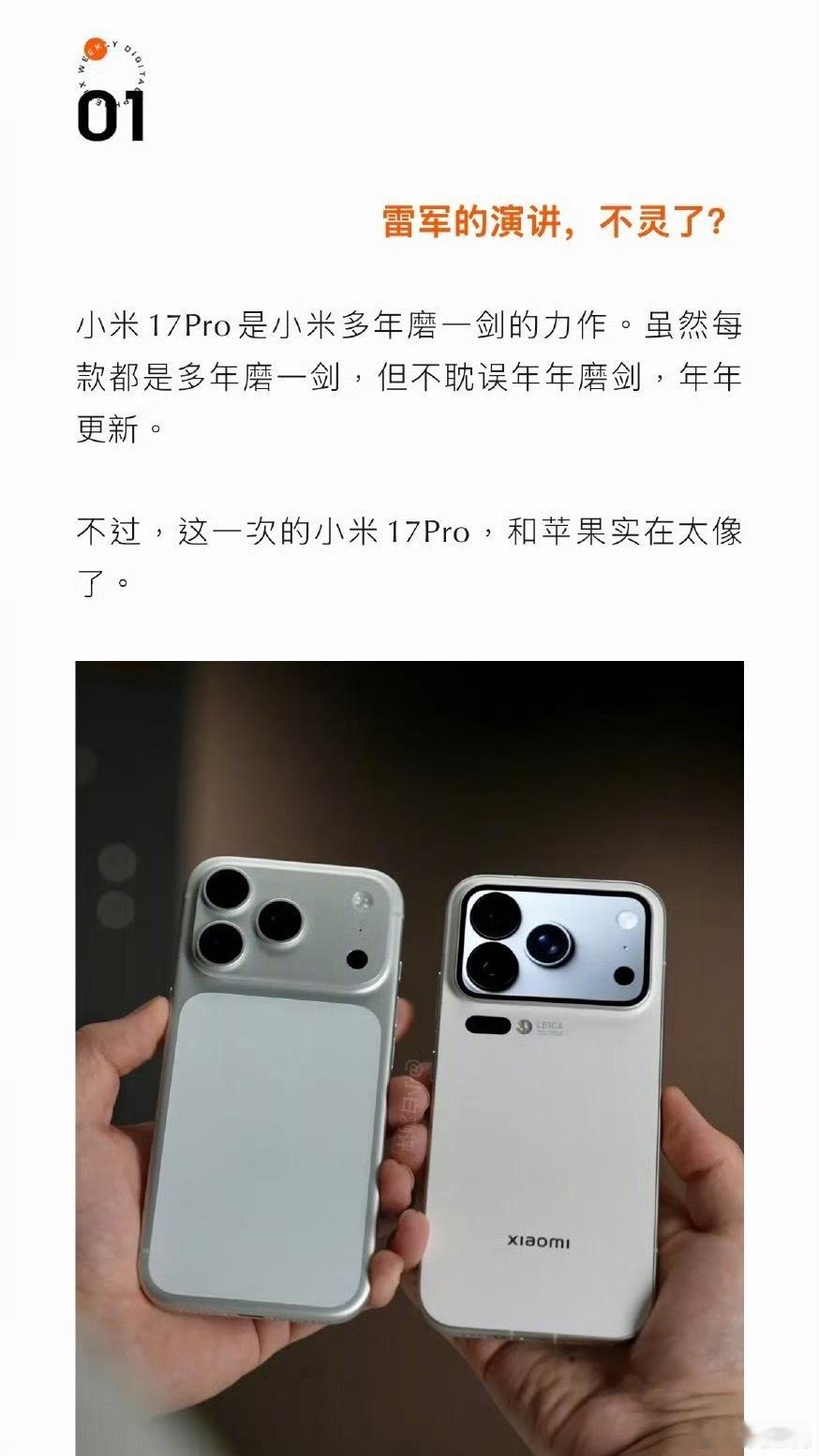 为什么雷军的口碑变了点开这个话题的第一张图我就笑了,说小米17 Pro和苹果太像了,黑你也要黑对地方啊[笑cry]