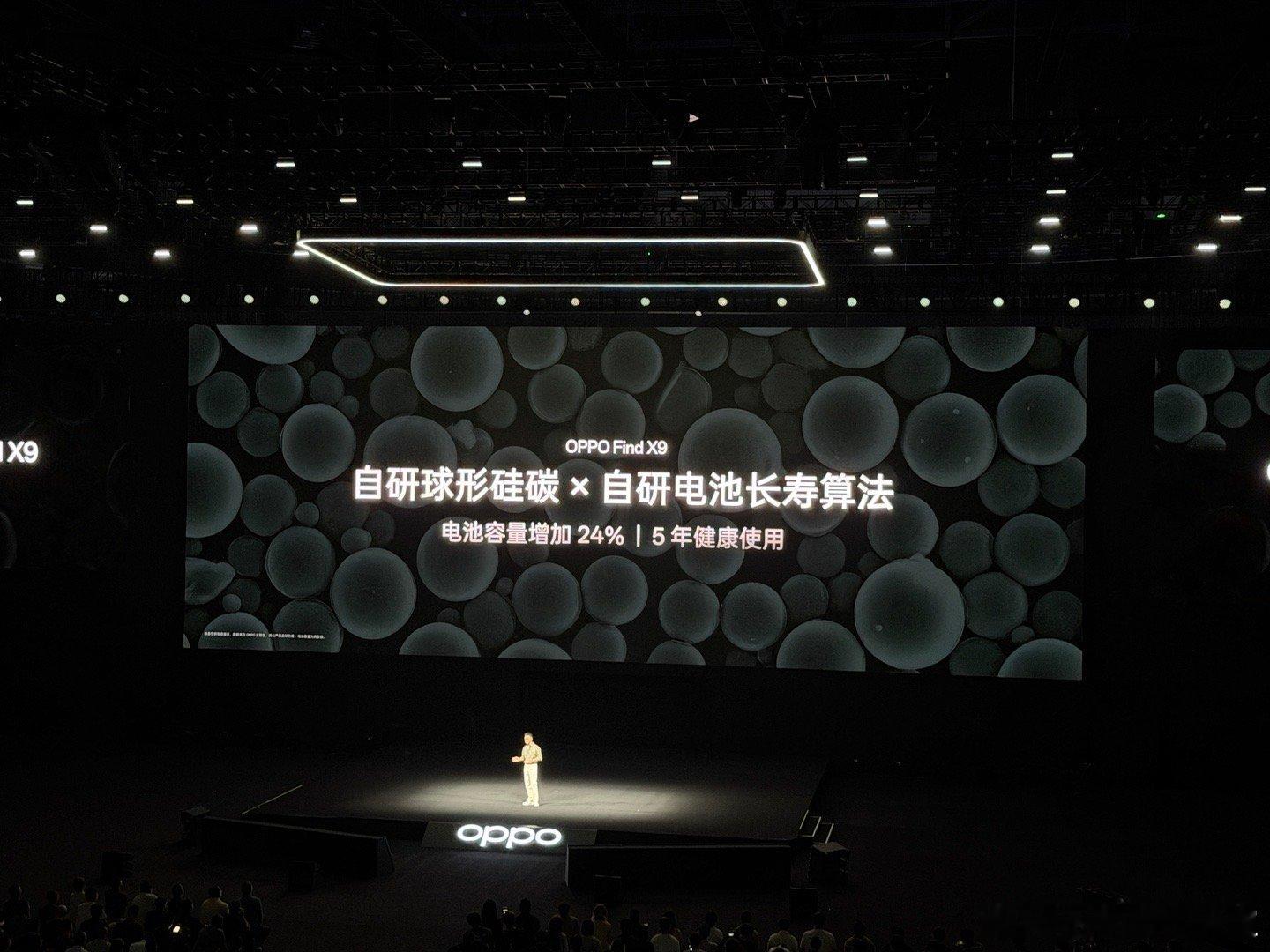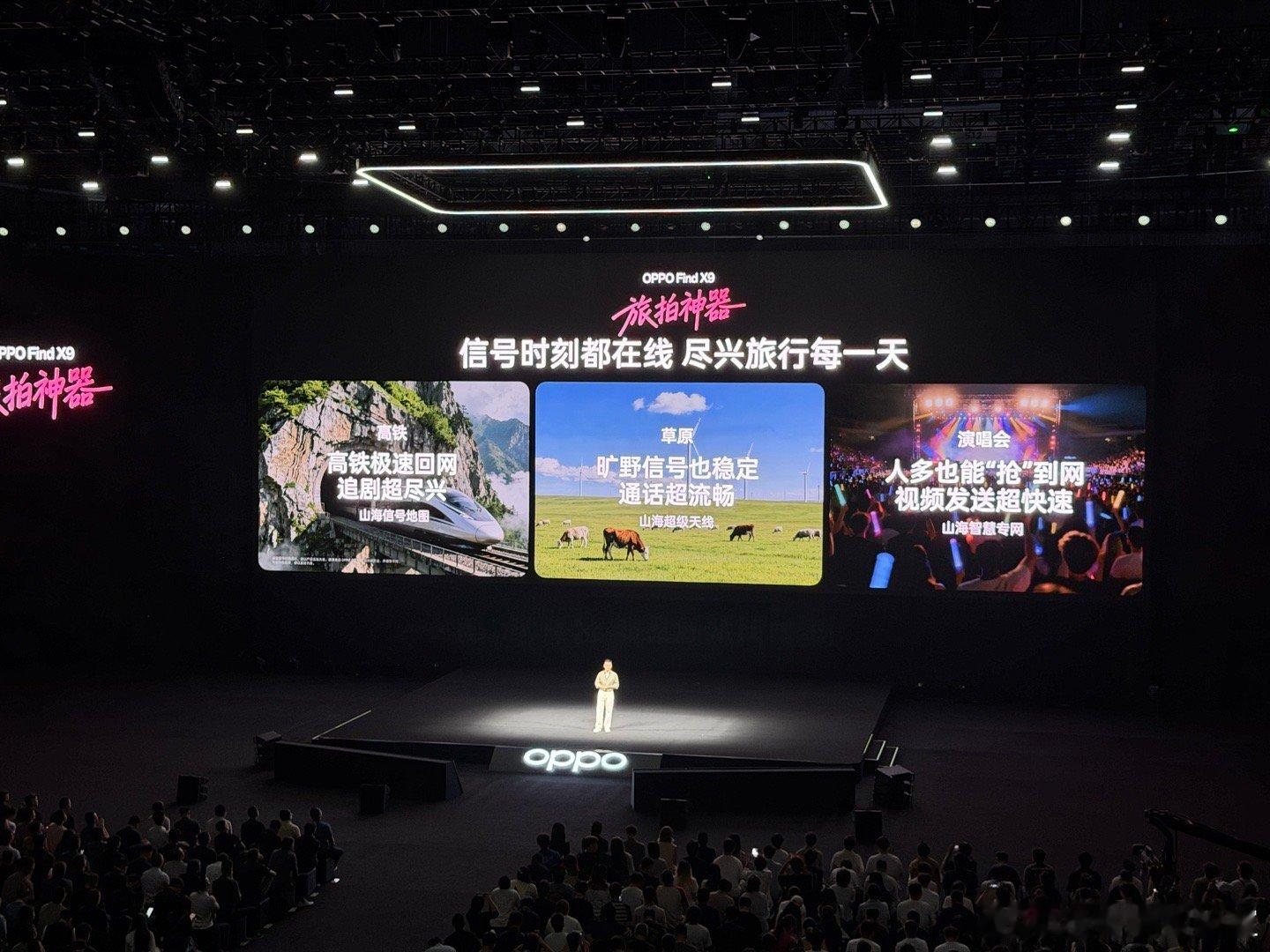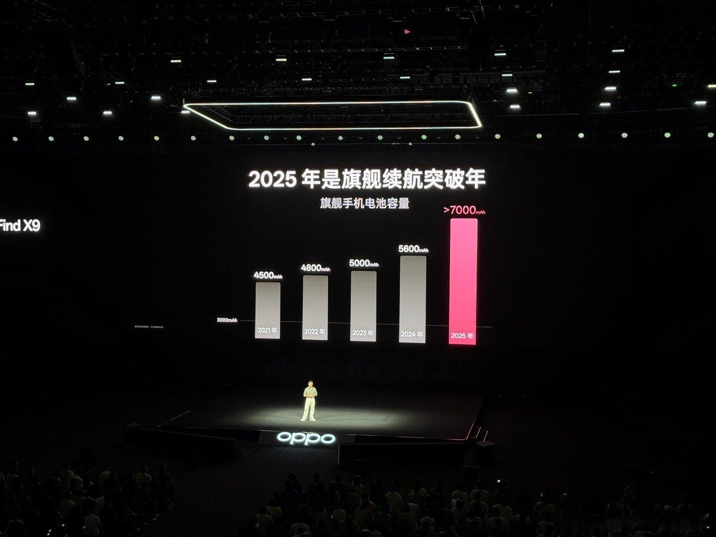 「无 7000,不旗舰」。Find X9 全系搭载 7000+ mAh 超大冰川电池,续航表现全面霸榜,告别充电宝,旅拍尽兴出片;更有山海通信增强芯片强势加持,信号时刻在线。 OPPO发布会