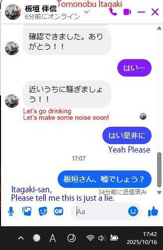 而在得知板垣伴信去世的消息后,原田胜弘发信息“告诉我,这是骗人的是吧,板垣桑”