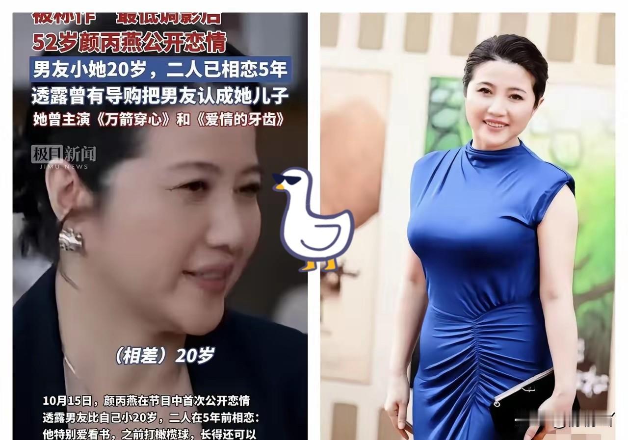 你可以喷张纪中老牛吃嫩草 你也可以喷郭富城找了小20岁的方媛 但唯一不能喷的就是,54岁颜丙燕找了小20岁的男友,得到很多网友的支持和拥护! 有网友说,颜丙燕为人正派无绯闻,实力超强。 为什么唯独颜丙燕能打破舆论的双标?她不是靠炒作或流量上位,而是用四十年的扎实作品说话。从《万箭穿心》到《爱情的边疆》,每个角色都像刻在观众心里。演技派不需要贩卖私生活博眼球。 公众对女性年龄的苛责向来尖锐,但颜丙燕扭转了这套叙事。她活成了“实力即自由”的样本——当一个人用专业赢得尊重时,私生活便不再是谈资,而是个人选择的权利。 那些骂老牛吃嫩草的人,本质是厌恶权力不对等。但颜丙燕和男友的关系里,看不到资源置换的阴影。她从不借势捧人,他也未蹭她名气。 各位读者你们怎么看?欢迎在评论区讨论。
