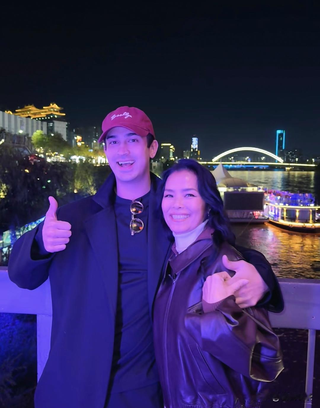 韦唯和27岁小儿子现身甘肃看夜景,母子在桥边相拥,看起来好亲密。韦紫湦身材高大,混血长相帅气,不在娱乐圈出道太可惜了![灵光一闪][灵光一闪]