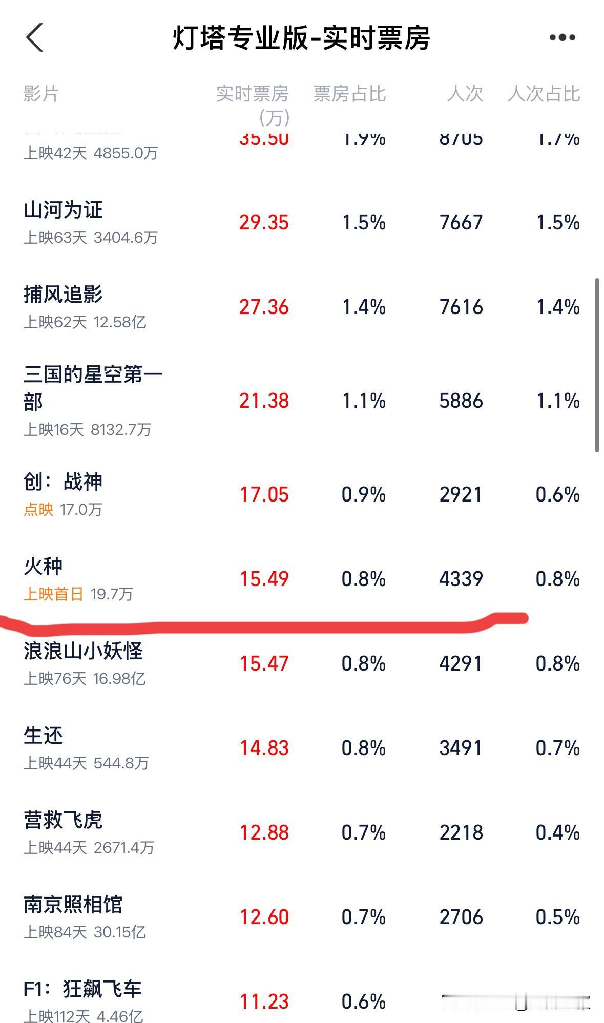 《火种》上映首日票房19.7万 一共4339人看了 现在大家都喜欢包场看电影吗 太豪横了 可以独享一个大空间 不过我更喜欢满座的感觉 那样该哭的哭该笑的笑 更有共鸣 《火种》选了一种更接地气的宣传方式 第一站去了中国石油大学 第二站去了北京化工大学 不知道下一站是哪里 还刷到有很多学校组织看的 不知道是不是? 毕竟是给青年人看的电影 还是得走进年轻人中间去 应该不是为了硬推 是为了对话吧 现在的青年都很优秀 能够有自己的信仰和选择 也很有分辨能力 我们也要做新时代的火种 默默支教默默捐款 做个好人