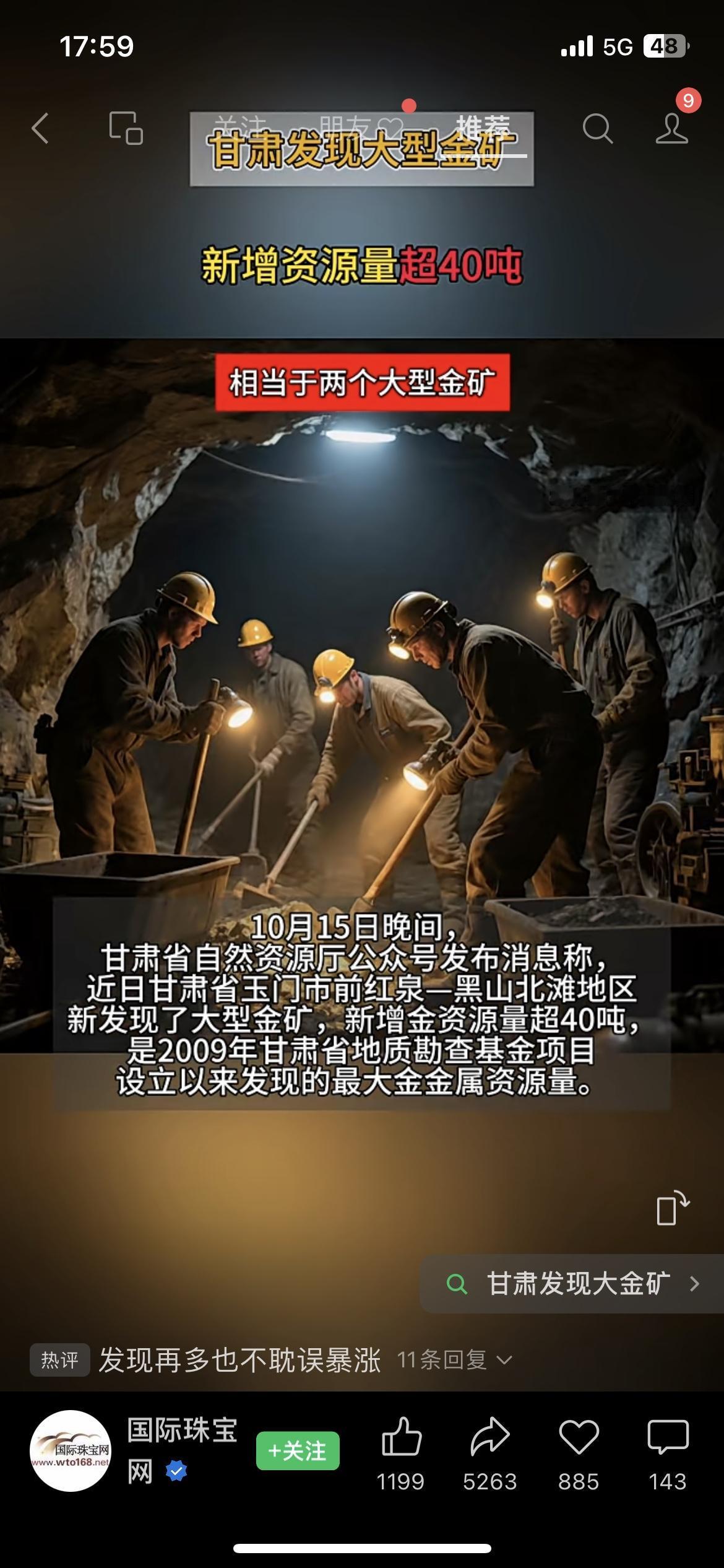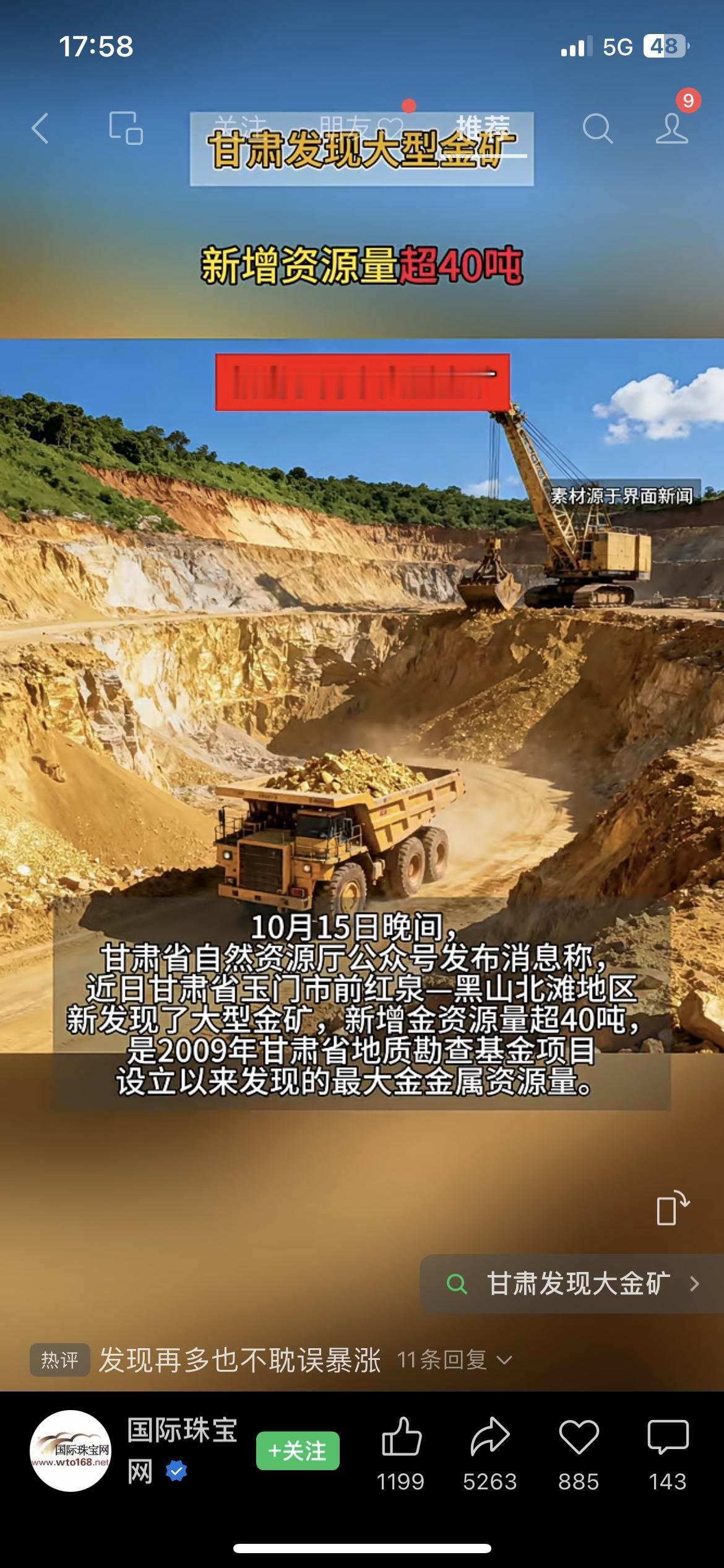 甘肃发现超40吨大型金矿!是2009年以来当地最大的,啥影响? 家人们,10月