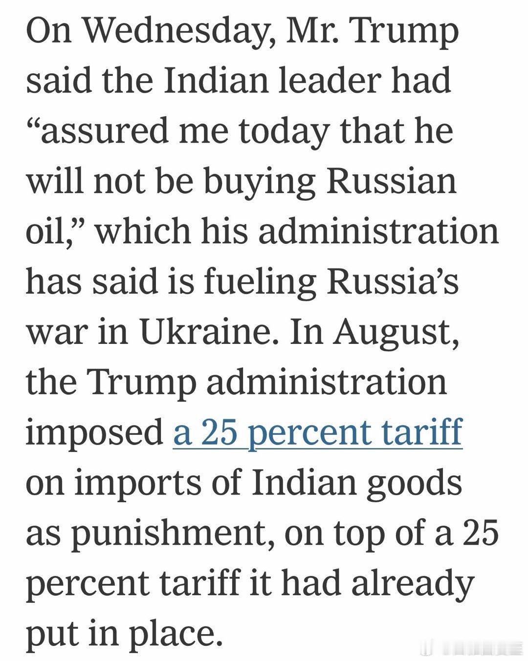 Trump:印度总理向我保证,不会再买俄石油⛽️