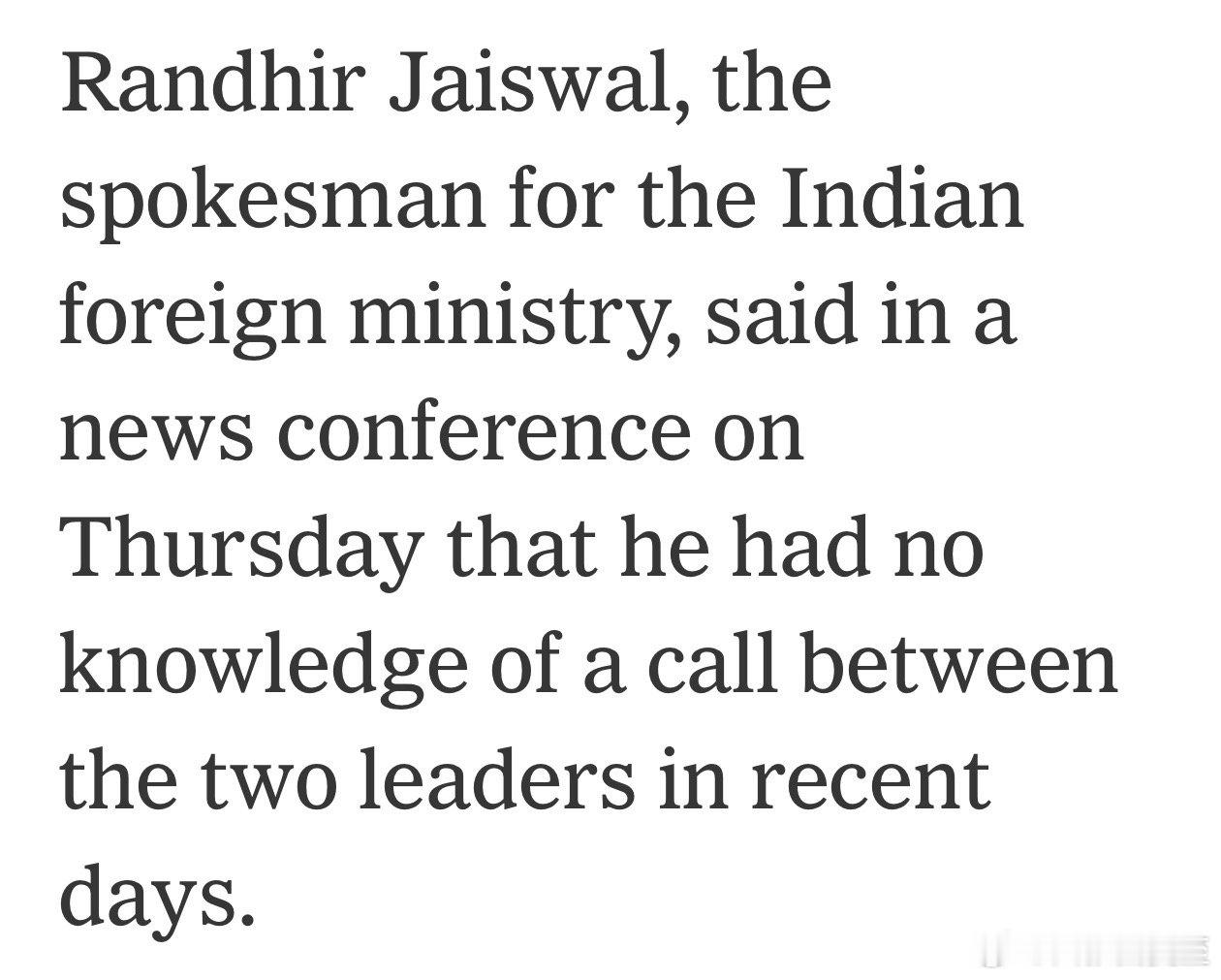 印度外交部发言人:最近几天两人没通话