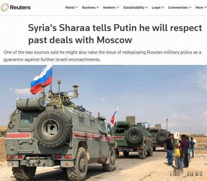 【外媒:叙利亚领导人希望俄军部署到叙南部地区】10月16日,路透社报道,叙利亚总统沙拉希望通过莫斯科会晤说服普京在叙南部部署俄军,以防范以色列入侵。沙拉希望获得克里姆林宫的支持,应对以色列提出的在叙利亚南部建立更广阔非军事区的要求。作为交换,他已向俄方暗示,俄罗斯可继续保留在叙利亚的赫梅米姆空军基地和塔尔图斯海军基地。