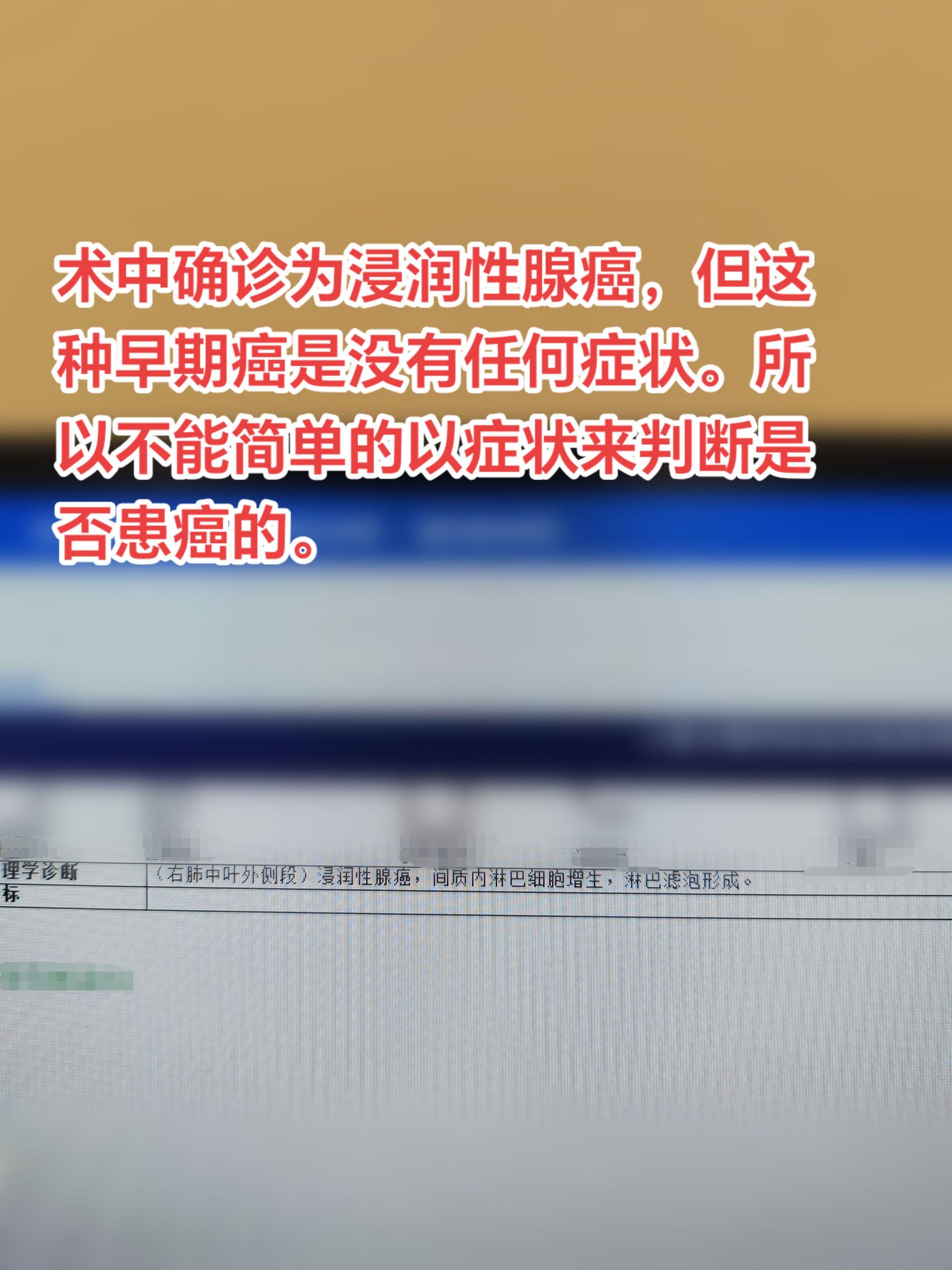 有这些特征的实性结节需要提高警惕!肺结节边缘不光滑,呈分叶状、毛刺状或胸膜牵拉,这些像“螃蟹脚”一样的形态是重要危险信号。就如该患者,影像上有明显的分叶、边界清晰、毛刺及密度不均等特征,影像上考虑高危结节。术中确诊为浸润性腺癌,但这种早期癌是没有任何症状。所以不能简单的以症状来判断是否患癌的。
