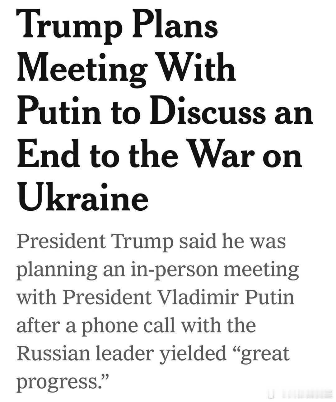 Trump宣布:今天与Putin通话,谈得很好、取得重大进展…双方同意在布达佩斯面谈,讨论如何结束俄乌战争…美国务卿和俄外长将立即开会,做准备工作