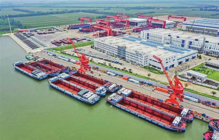 为加速临港产业集聚,济宁市规划了以运河为主线的“一轴七园”临港产业布局,梁山港煤钢物流园入选“全国物流业制造业融合创新发展典型案例”、去年营收突破150亿元,济州港江北粮食物流园总仓容量达16.7万吨、粮食贸易增长近5倍。太平港投产全国首个内河新能源船舶制造基地,入选国家重要产业战略备份基地,今年6月份开始为法国达飞海运集团建造182标准箱纯电动力船舶,标志着我国制造的纯电动力内河集装箱运输船舶首次出海、驶向全球。