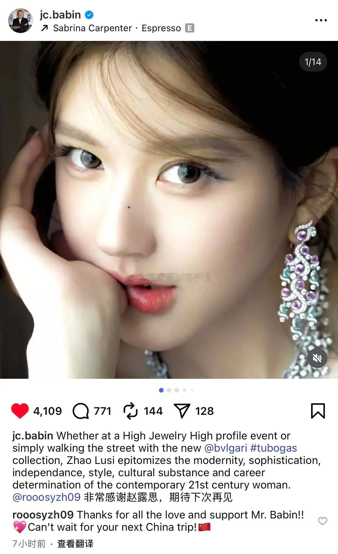 宝格丽全球总裁、副总裁、大中华区总裁都发了赵露思