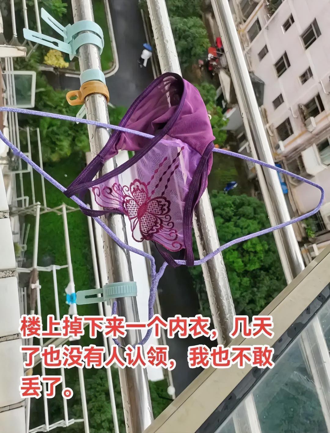 这是谁的内衣,掉在我家阳台好几天了,也没有人认领,咱也不敢乱动乱丢,万一找上门来