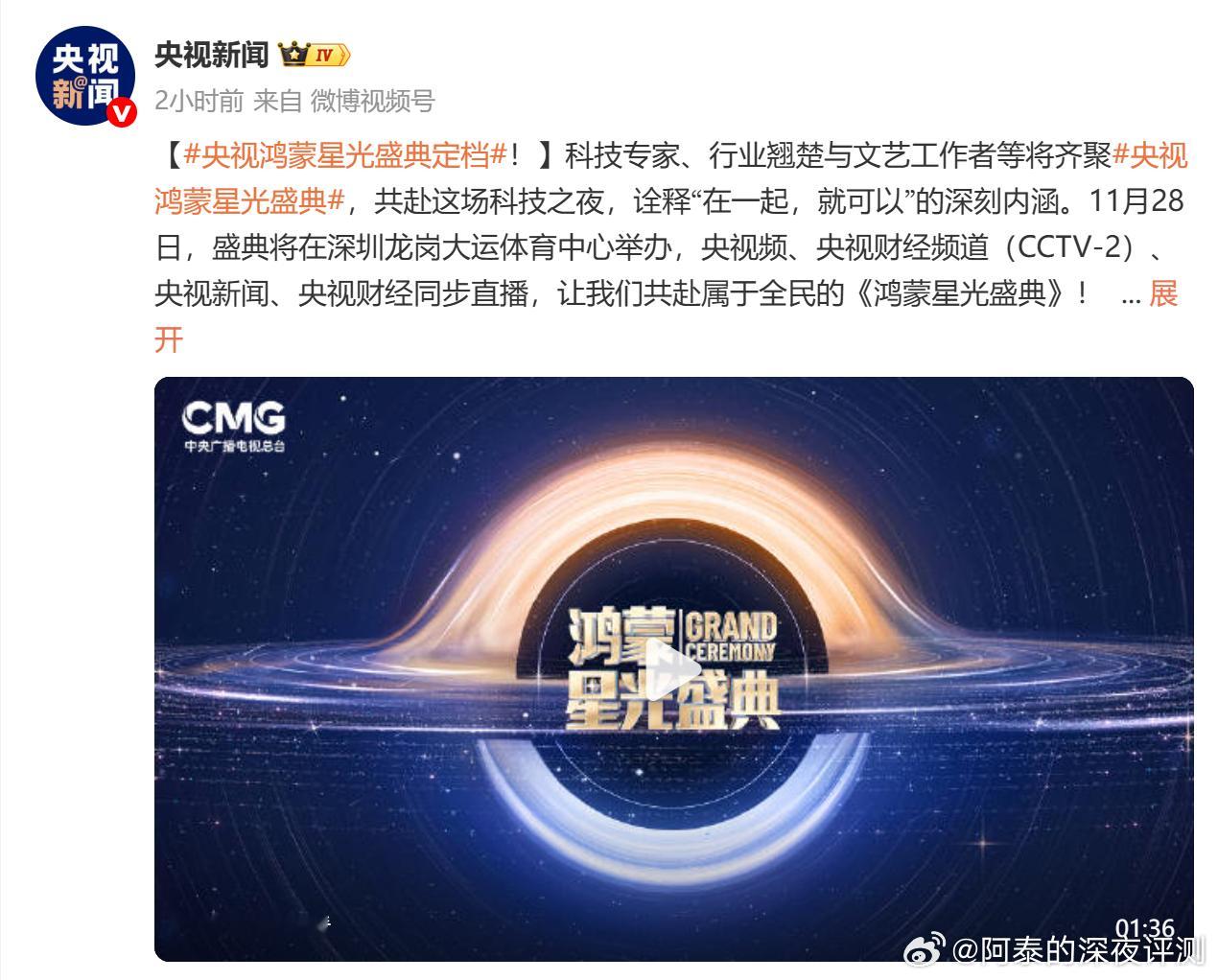 定档了!央视鸿蒙星光盛典定档,咱就说这个级别够高的啊[赞][赞]央视鸿蒙星光盛典