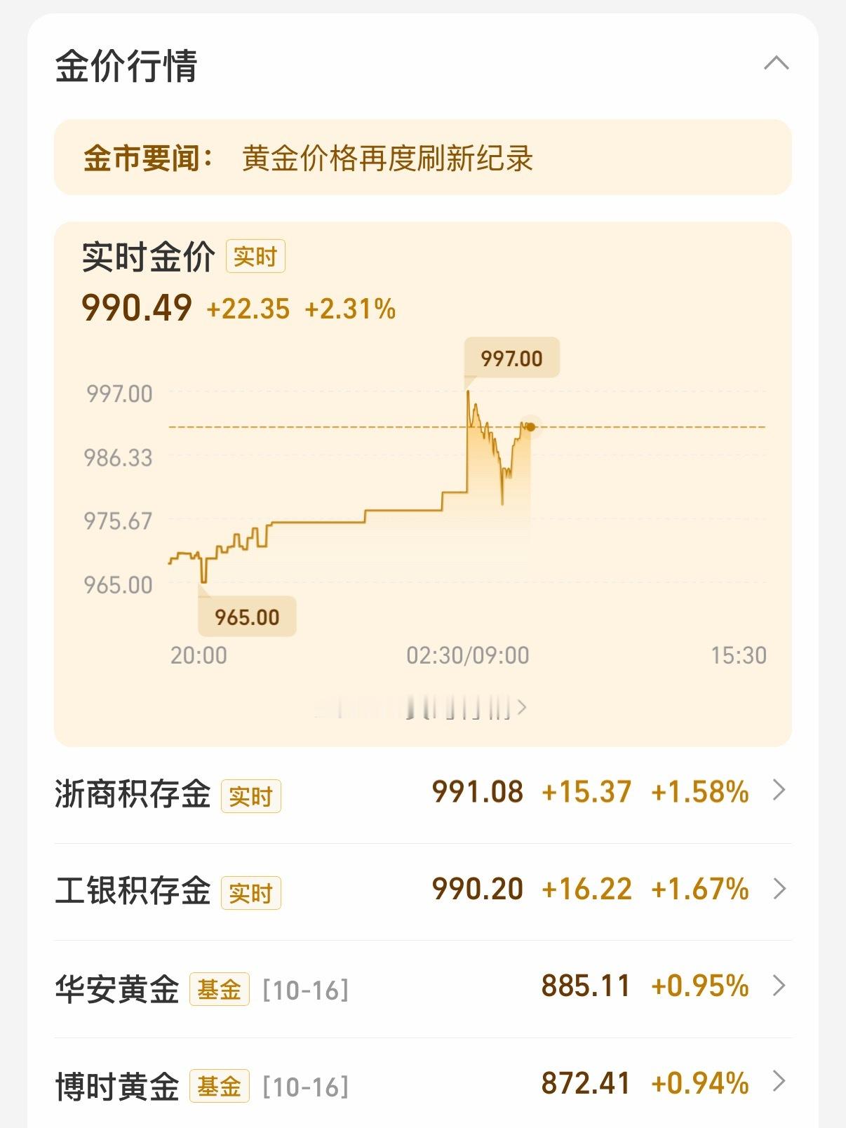 黄金大涨,再破新高。建议大家有闲钱多囤点黄金,作为硬通货,涨了是赢家,跌了金子还在,怎么都不亏[努力]