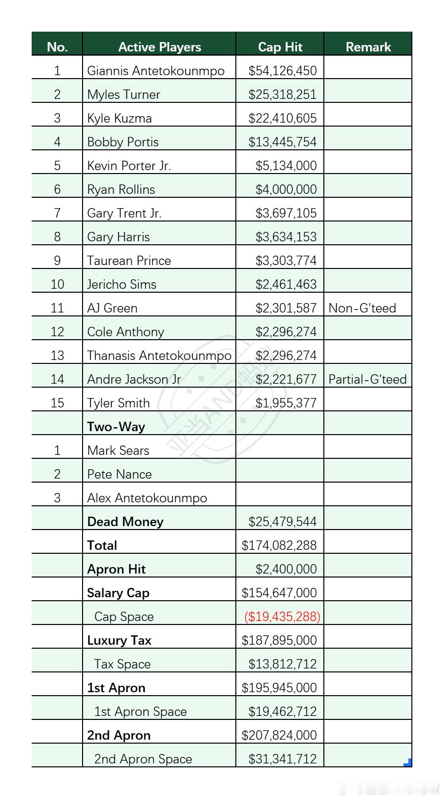 密尔沃基雄鹿裁掉了克里斯·利文斯顿,续约了AJ格林4年4500万,签下了约翰尼·戴维斯(E10)。目前正式合同15个。 ​​​