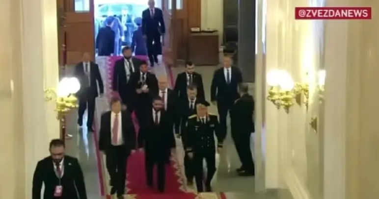 他在克宫与普京会面时开场便说,“你们的台阶很长,正好可以锻炼一下身体,这样我们走上来就不会感到累了!”