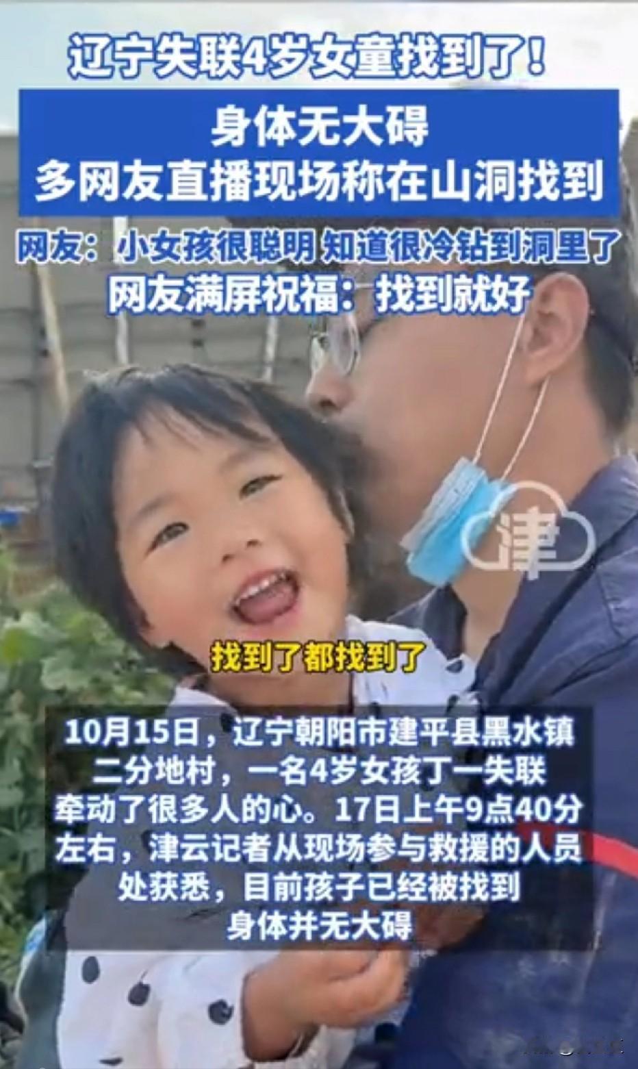 满屏祝福!失联44小时的辽宁4岁小女孩找到了!被发现时还能和救援人员对话,这是天