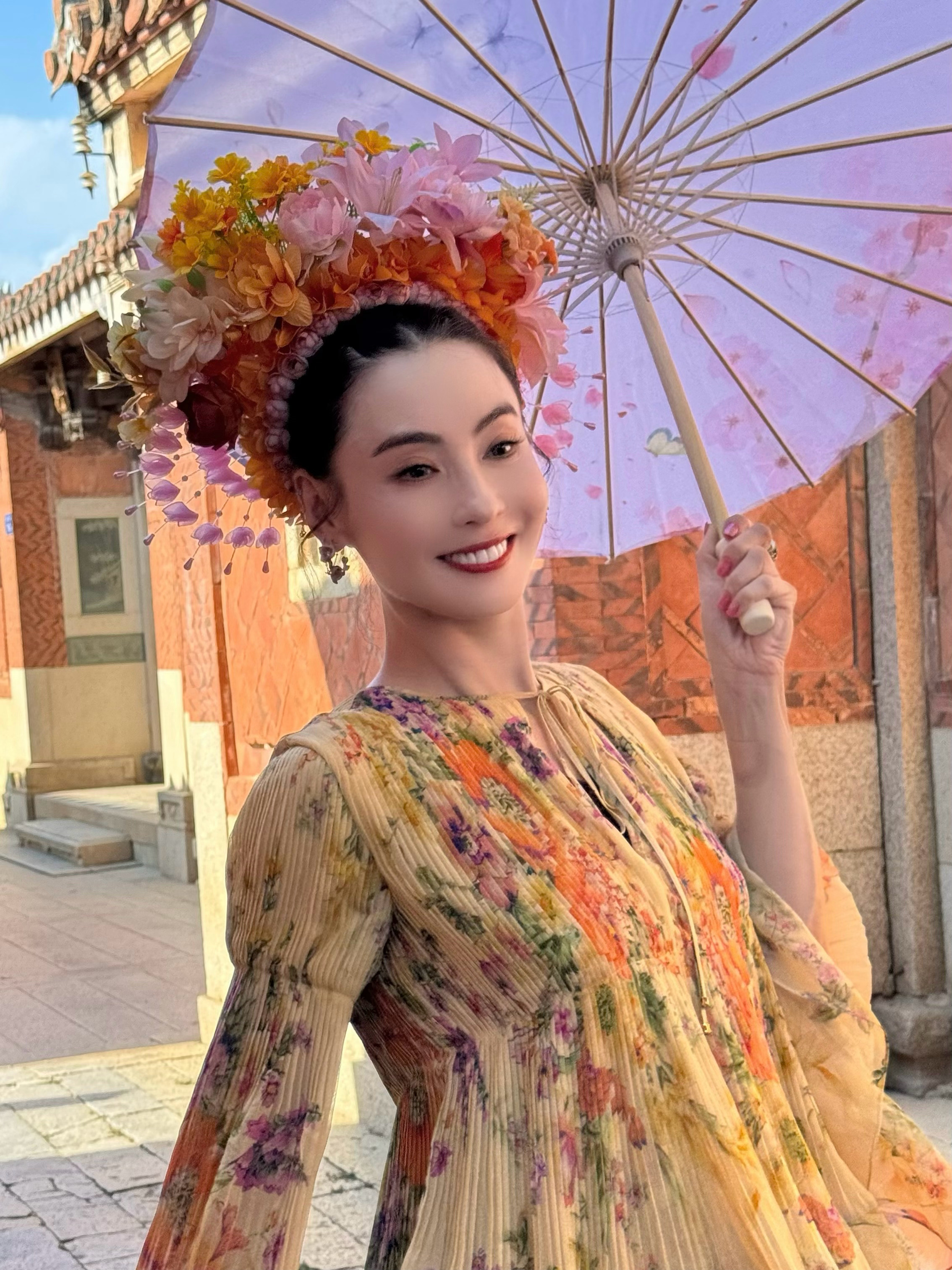 张柏芝戴了泉州非遗簪花