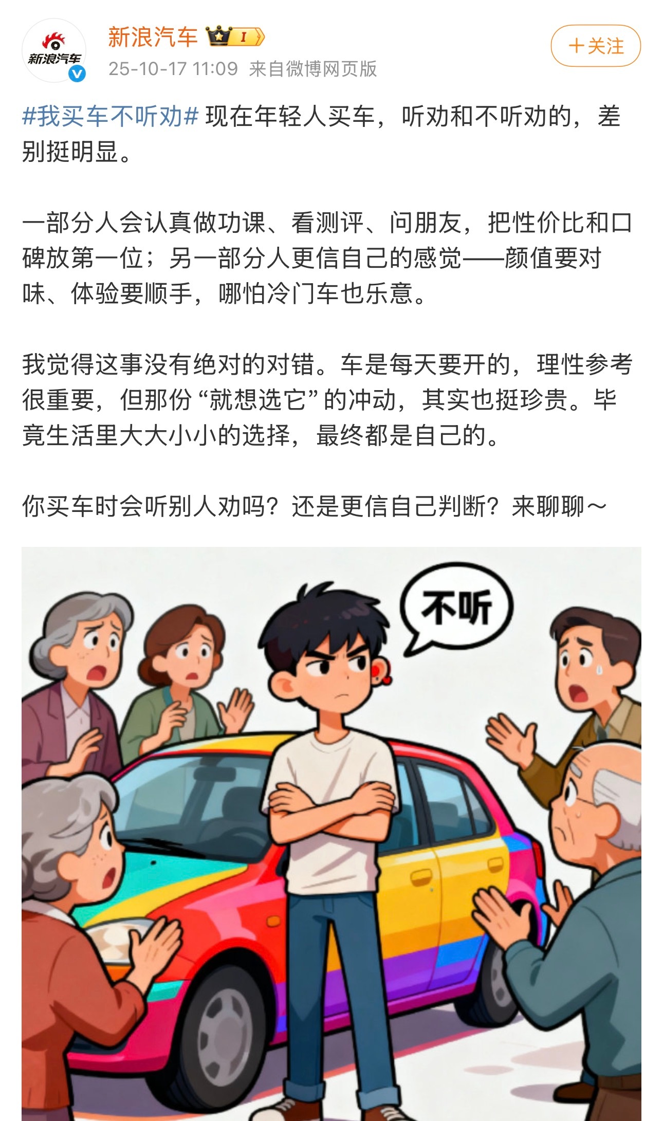 我买车不听劝 红仔一直觉得年轻人买车真没必要听劝,在年轻的时候条件允许的情况下,喜欢什么车就买什么车,一切的出发点只有一个就是“喜爱”[举手]
