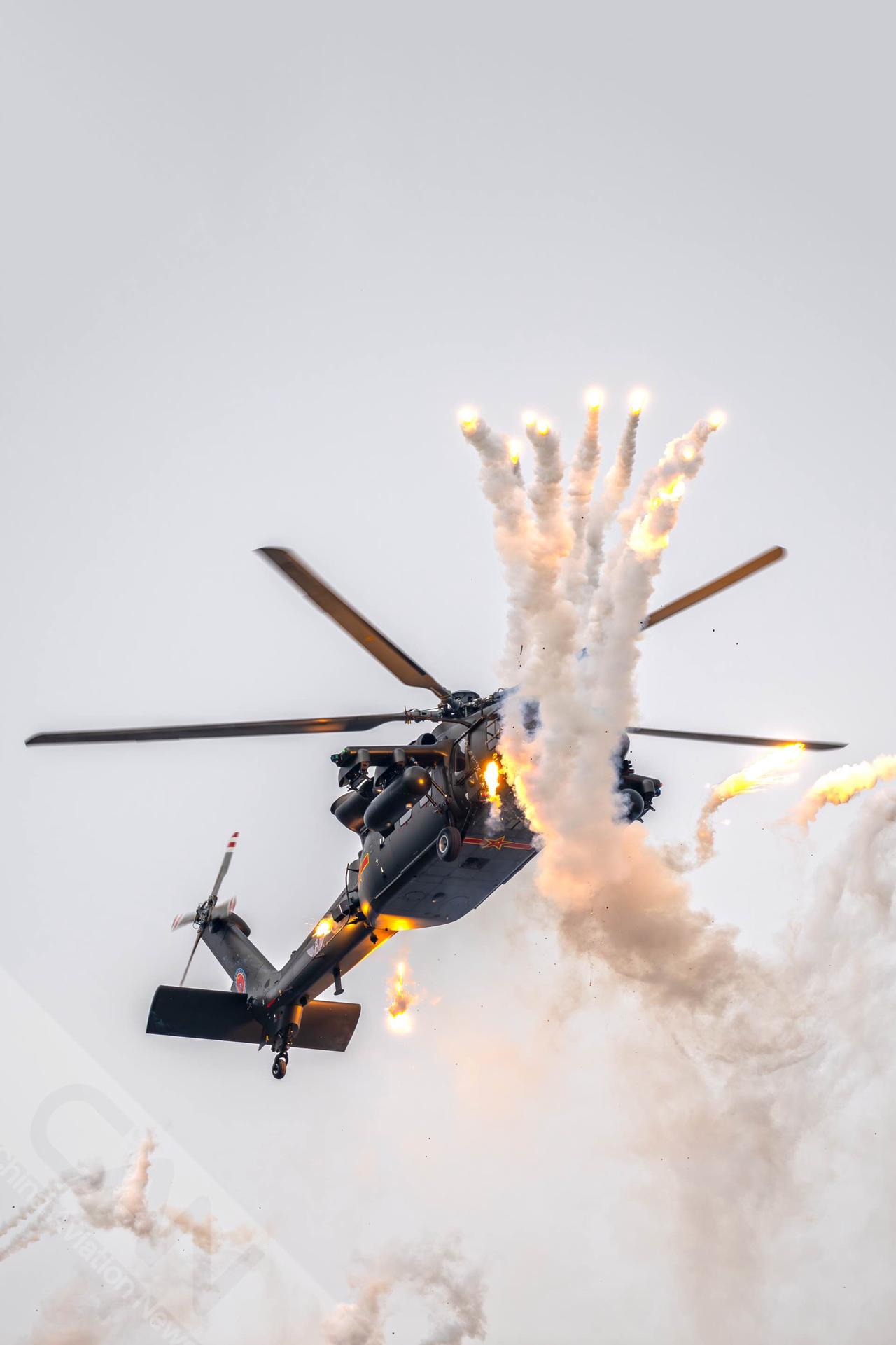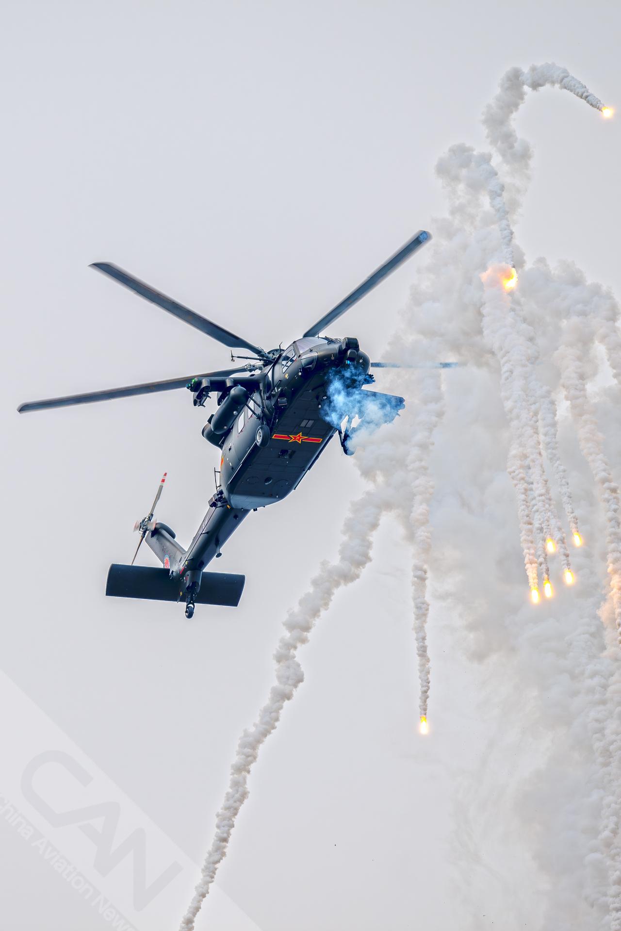 第七届天津直博会上,直20飞行展示释放干扰弹,呈现凌空“画凤凰”精彩瞬间。(曹楠)