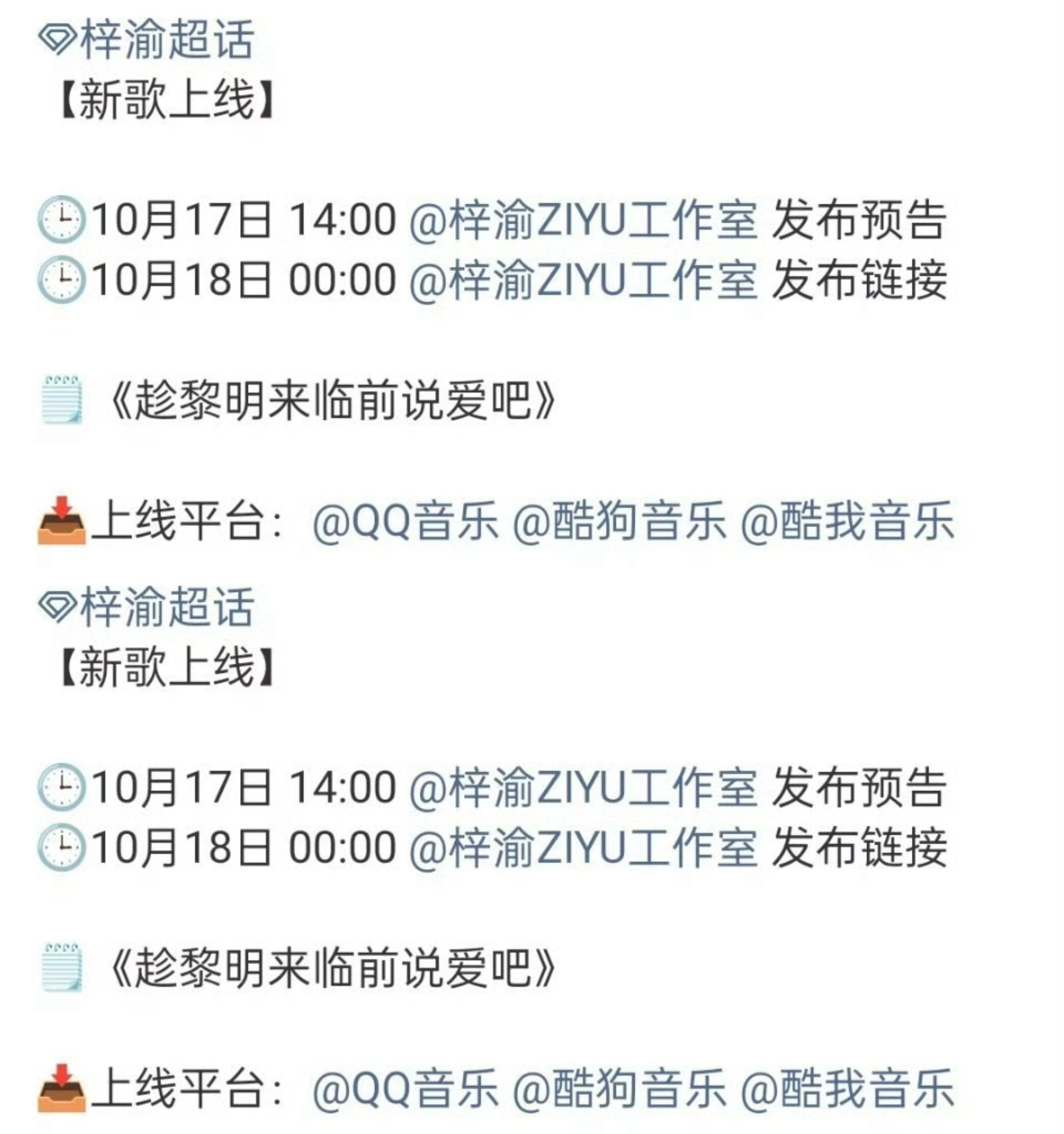 梓渝新歌趁黎明来临前说爱吧时间表梓渝新歌《趁黎明来临前说爱吧》时间表,又有新歌了,事业心爆棚,就是这个小梓渝爽😍