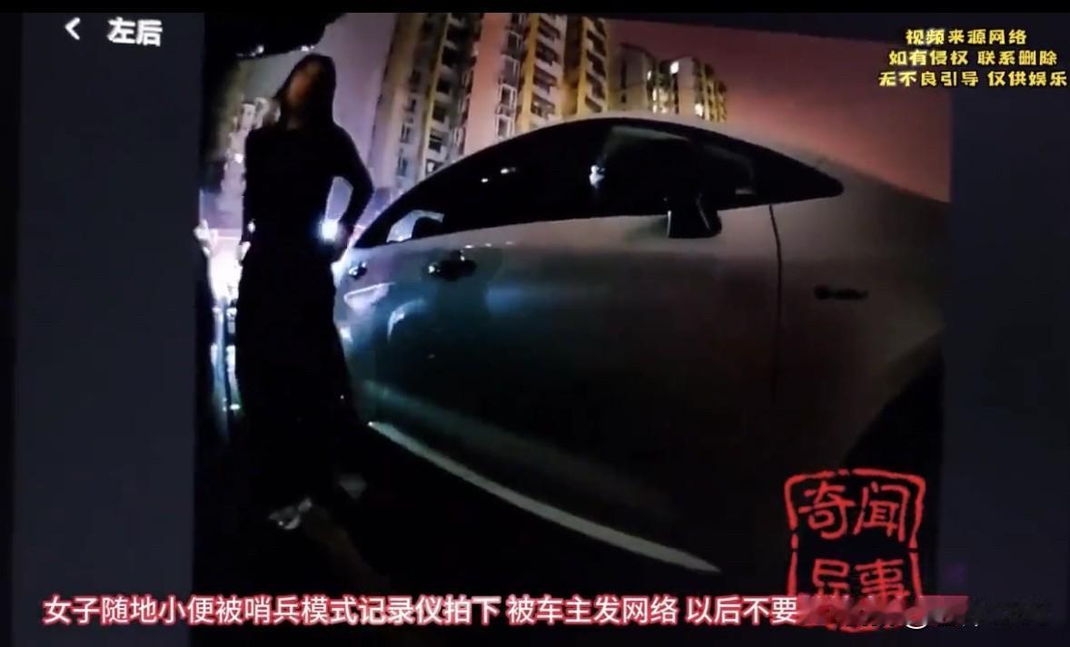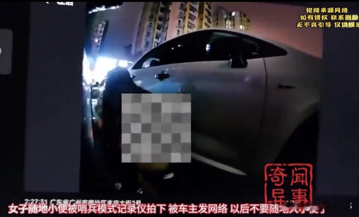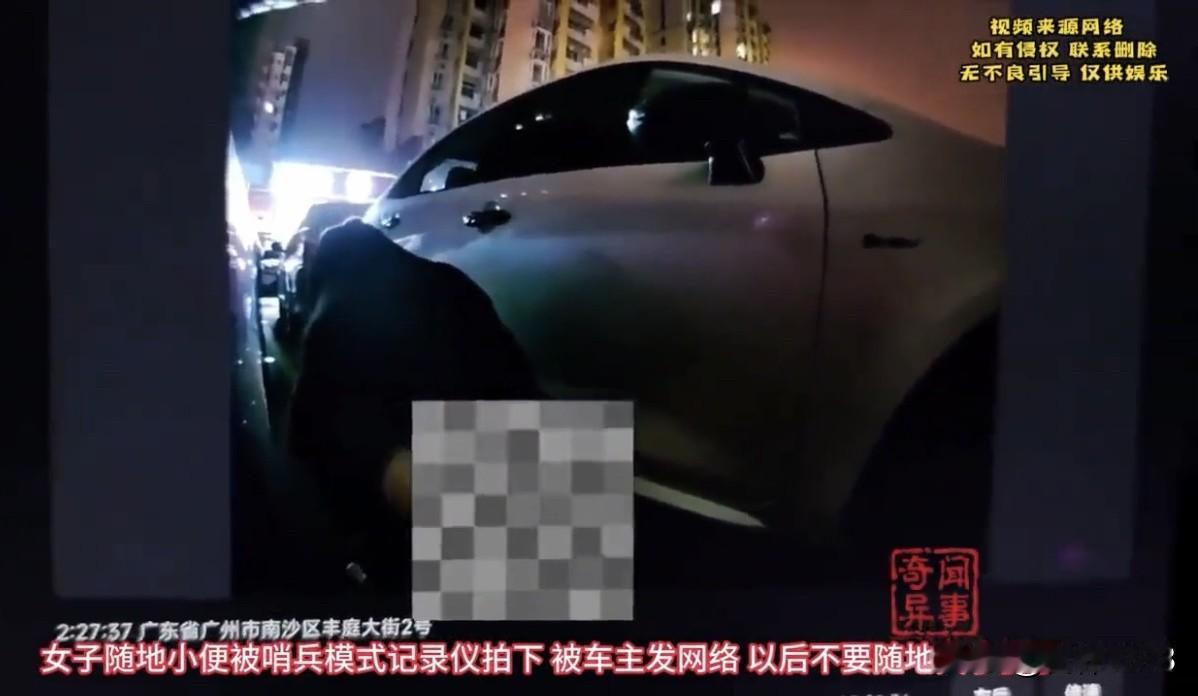 被行车记录仪拍下广州的一个夜晚,年轻女士因为内急,附近没有没有找到卫生间,在临