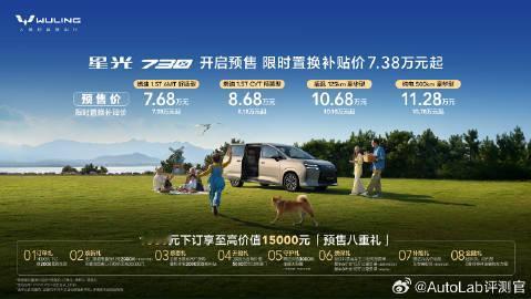 今天五菱星光730正式开启预售,叠加置换补贴后预售价7.38-10.78万元,等正式上市,大概率还能再低一点 新车车长4.91米、轴距2.91米,标准中型MPV体量和七座布局,车内空间前中后三排都能伸开腿,长途出行一家七口都能坐得舒服。第三排放倒后能腾出1202L的平整大空间,周末露营、搬家都不在话下。 动力上,星光730甚至直接给了纯电、插混、燃油三种版本。插混版搭载灵犀动力3.0,纯电续航125km,综合续航1100km,适合长途; 纯电版续航500km,搭载300万台0自燃的神炼电池,安全又省钱; 燃油版则上了全新1.5T发动机,配6MT或CVT,追求耐造、皮实,就选它。 值得一提的是,星光730在配置方面还给了同级唯一的电动滑门,如果是纯电车型还提供220V外放电等功能